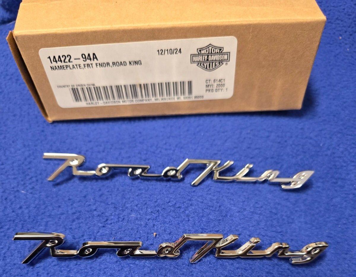 DESCRIPTION: THIS IS A SET OF NEW GENUINE HARLEY DAVIDSON ROAD KING NAMEPLATE/ BADGES FOR FRONT FENDER. IT IS FOR LEFT AND RIGHT SIDE.*5/GHD68/10Z/5-5-25