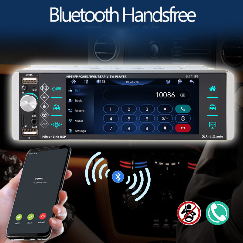 Single DIN 5.1" Car Stereo Built-in Carplay Bluetooth MP5 FM / AM Radio AUX USB Specs
