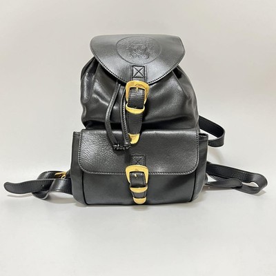 GIANNI VERSACE Backpack Medusa Embossed Gold Hardware Accent Leather Black