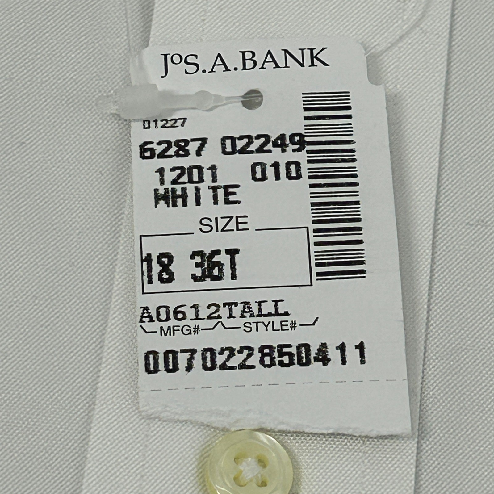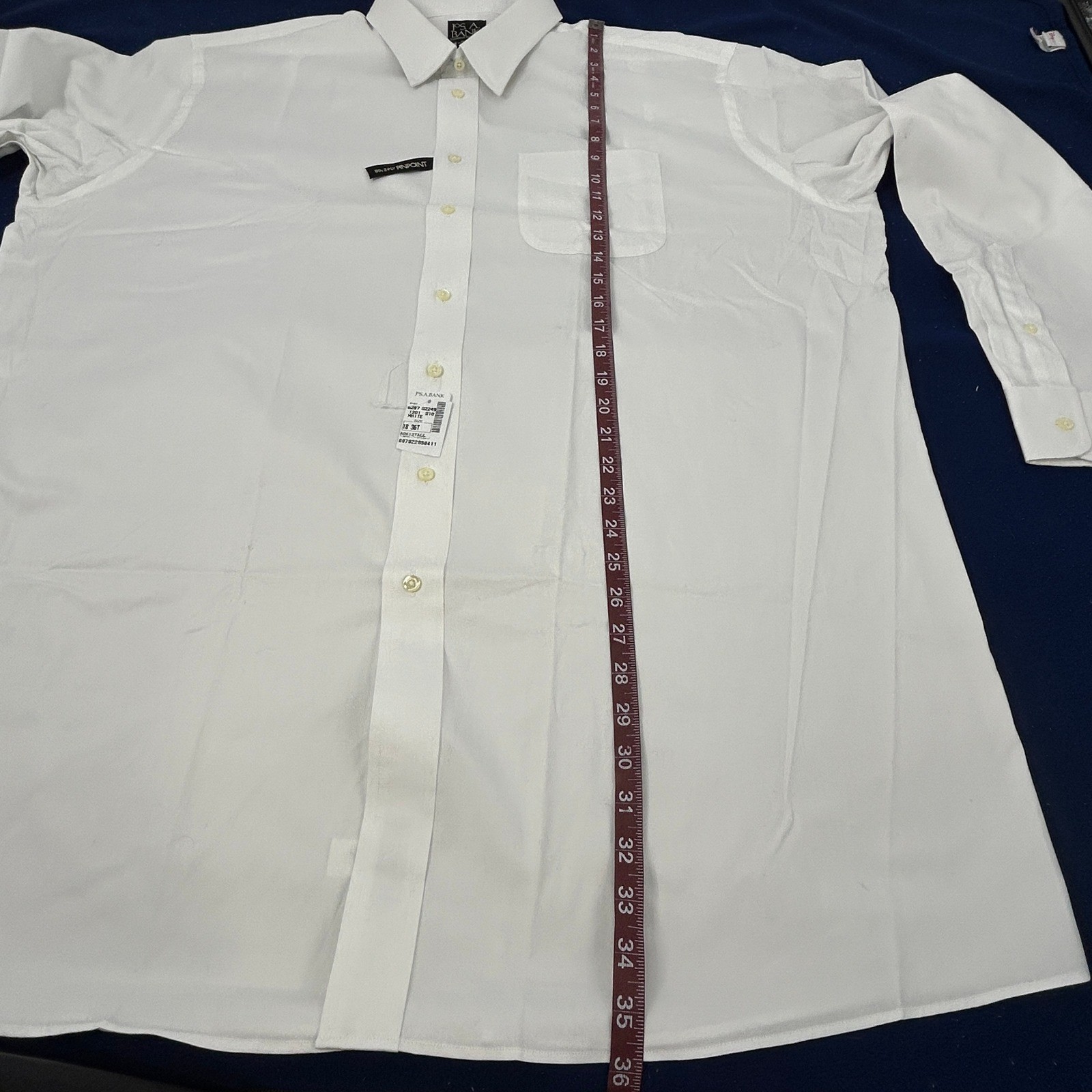 JOS A BANK EXECUTIVE COLLECTION white dress shirt. This long-sleeve button-up shirt offers a classic and refined look. It features a chest pocket and a pinpoint cotton fabric for a smooth finish. The collar is a traditional spread collar, and the cuffs are adjustable with buttons. A small embroidered detail is present on the left chest placket.Measurements:• Chest (pit to pit): 28.5 in• Sleeve Length (shoulder to cuff): 33 in• Shirt Length (collar to hem): 35.5 in• Collar Size: 18 inDepartment: MenNeck Size: 18 inFit: ClassicSleeve Length: Long SleeveType: Dress ShirtPattern: SolidCollar Style: PointMaterial: 100% CottonTop Cuff Style: Barrel CuffFeatures: Pocket, Non-IronNeckline: CollaredClosure: ButtonFabric Type: WovenAccents: Button, LogoOccasion: Business, WorkwearKeywords: jos a bank shirt, executive collection, white dress shirt, pinpoint cotton, tall size, long sleeve, button up, spread collar, mens formal wear, classic fit, dressy, workwear, business casual, tailoredCondition: New with TagsReturns: Item must be received in same condition. New with Tags items must have tags attached on item.