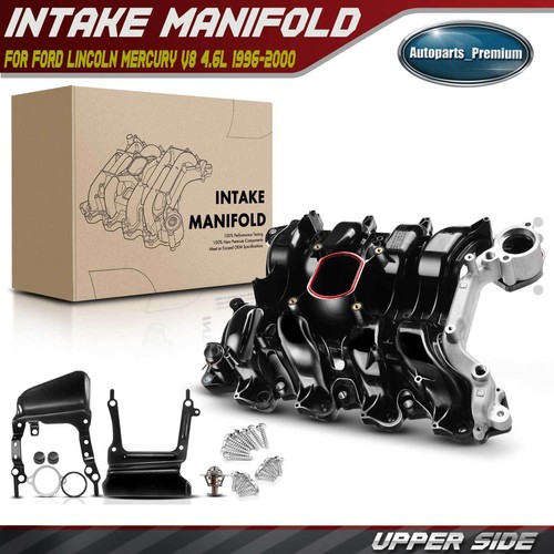 Brand New Warranty: One Year Warranty OE Number: F6SZ 9424-AA, F8AZ 9424-AAA, F8AZ 9424-BAA, F8AZ9424BC, F8AZ9424CA, F8AZ9424CB, 615-178 Quantity Sold: One Set Vehicle Information: Make Model Year Engine Body Style Position Ford Crown Victoria 1996-2000 V8 4.6L Sedan Upper Ford Mustang 1996-1998 V8 4.6L Coupe & Convertible Upper Ford Thunderbird 1996-1997 V8 4.6L Coupe & Sedan Upper Lincoln Town Car 1996-2000 V8 4.6L Sedan & Limousine Upper Mercury Grand Marquis 1996-2000 V8 4.6L Sedan Upper Mercury Cougar 1996-1997 V8 4.6L Sedan Upper More Detailed Application ►1996-1996 Ford Crown Victoria V8 4.6L→ ( 8th Vin Digit 6 ) ►1996-2000 Ford Crown Victoria V8 4.6L→ ( 8th Vin Digit 9 ) ►1996-2000 Ford Crown Victoria V8 4.6L→ ( 8th Vin Digit W ) ►1996-1998 Ford Mustang V8 4.6L→ ( 8th Vin Digit X ) ►1996-1997 Ford Thunderbird V8 4.6L→ ( 8th Vin Digit W ) ►1996-2000 Lincoln Town Car V8 4.6L→ ( 8th Vin Digit W ) ►1996-1996 Mercury Grand Marquis V8 4.6L→ ( 8th Vin Digit 6 ) ►1996-2000 Mercury Grand Marquis V8 4.6L→ ( 8th Vin Digit W ) ►1996-1997 Mercury Cougar V8 4.6L→ ( 8th Vin Digit W ) Product Specifications: Position Upper Intake Manifold Color/Finish Black Alternator Mount Yes EGR Ready Yes Gasket or Seal Included Yes Manifold Height (in) 8 In.