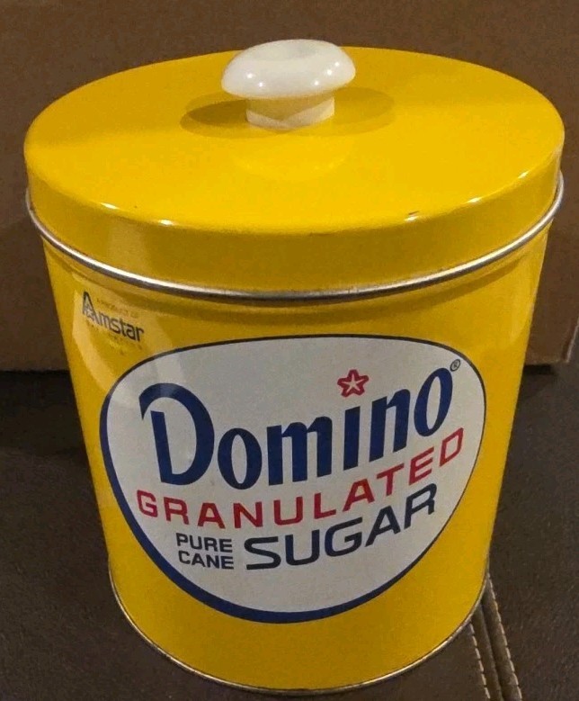 VTG J.L. Clark Domino Granulated Sugar Yellow Metal Tin Canister Pure Cane