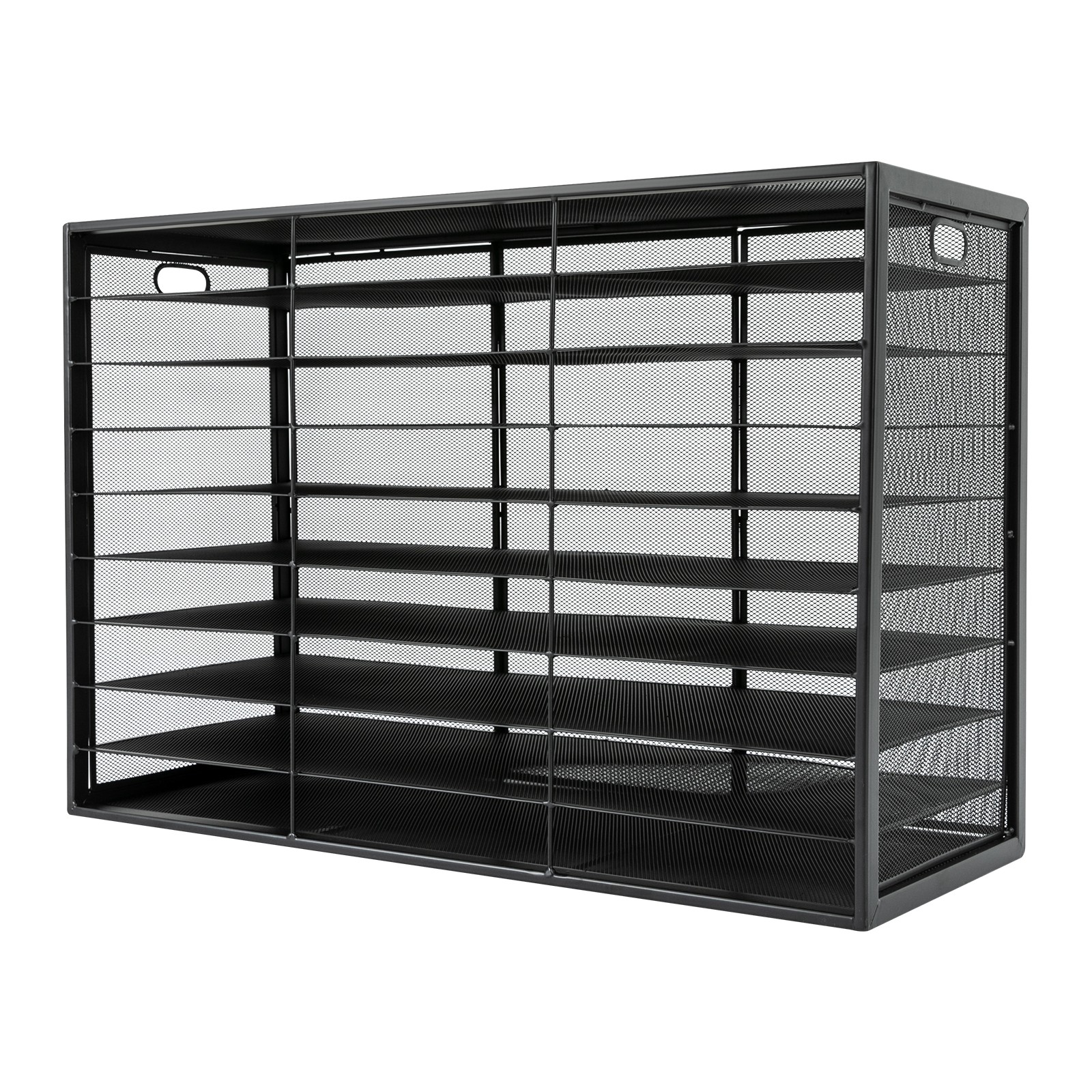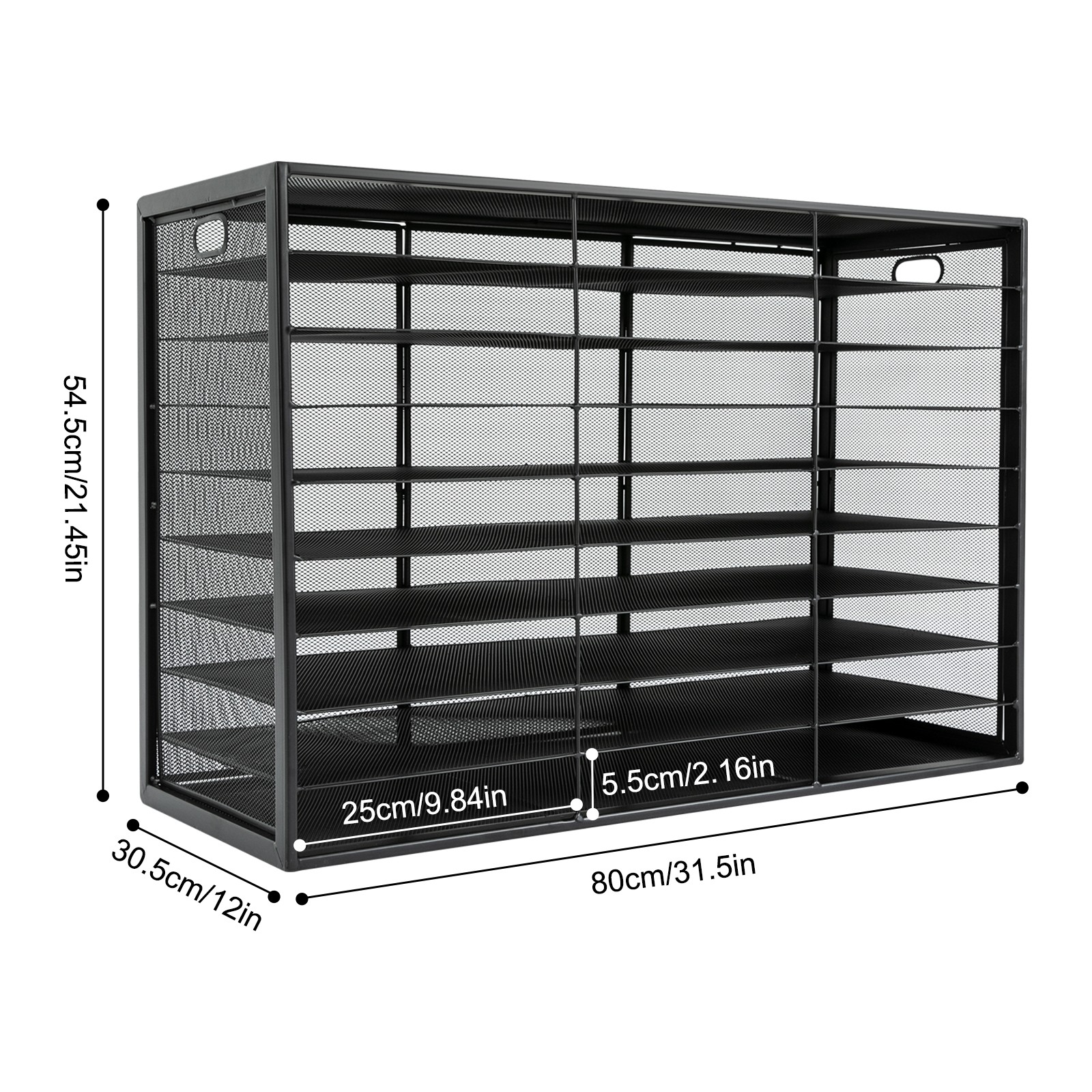 Material and Rectangular Structure Give This Product a Bearing Capacity of 66.14 Lbs, so You Can Use It with Confidence Without Worrying About Collapse. Extra Large Capacity: It Has 27 Small Compartments to Help You Quickly and Easily Sort, Store, and Organize Magazines, Comic Books, Documents, Student Work, Files, and Journals. the Large Platform at the Top Can Be Used to Hold a Calculator, Remote Control, Pen Holder, Alarm Clock, and Other Supplies. Thoughtful Design: the Open Design Allows You to Quickly Identify and Access Your Documents, Saving You Time and Energy. the Mesh Design Makes the Product Ventilated and Dry. Versatile Appearance: It Adopts a Classic Black Design That Can Match Most Decorating Styles and Color Themes, Suitable for Most Use Scenarios. Installation-free: You Can Use This Product Directly After Receiving It Without Additional Installation, Which Saves You Time and Energy. Ideal Gift: Thanks to Its Practicality, You Can Give It to Your Family or Friends As a Christmas or Housewarming Gift to Keep Their Desktops Tidy and Improve Work Efficiency. Easy to Clean: the Smooth Surface and Simple Structure Make This Product Easy to Clean with Water and a Damp Cloth. DetailsFlat and Smooth Bottom: It Ensures Stable Placement of This Product and Will Not Be Easy to Slide. Hollow-cut Handles: They Are Comfortable to Grip and Convenient for You to Lift This Product. Smooth Edges: the Smooth and Burr-free Edges Protect Your Hands from Being Scratched, Making It More Reassuring to Use. ApplicationIt Can Be Used in the Bedroom, Living Room, Kitchen, Dressing Room, Classrooms, Craft Rooms, Studio, Library, Study, and Office to Store Your Cosmetics, Office Supplies, Stationery, Files, Clips, Scissors, Periodicals, Paperback Books, Magazines, Comic Books, Art Supplies, Students Assignments, and Other Small Objects. SpecificationsMaterial: IronSurface Treatment: Baking PaintColor: BlackStyle: ModernShape: RectangularAssembly Required: NoMounting Type: TabletopTotal Load-bearing Capacity: 30kg/66.14lbsNumber of Tiers: 9Number of Compartments: 27 Each Compartment Size(L*W): 25*5.5cm/9.84*2.16inProduct Size: 80*30.5*54.5cm/31.5*12*21.45inPackage Size: 82*32*56cm/32.28*12.6*22.05inGross Weight: 8.5kg/18.74lbsNet Weight: 8kg/17.64lbs Package Included1* File Organizer NotesThis Package Includes a File Organizer Only and Does Not Include Files, Books, Pens, Calculators, and Other Items. Please Allow the Slight Color Difference Caused by the Shooting Light and 1-3 Cm Error Due to Manual Measurement, and Make Sure You Do Not Mind Before Ordering.PaymentDelivery detailsTerms of salesAbout usContact usPayment We accept ebay payment 。Fees such as import duties, taxes are not included in the item price or shipping costs. These charges are the buyer's responsibility.Delivery detailsShipping: 2-9 working days to: USA Terms of sales We maintain high standards of excellence and strive for hundred percent customer satisfaction. Feedback is very important to us. We hope that you contact us immediately before you give neutral or negative feedback, so that we can address your concerns. It is impossible to address issues if we do not know about them! About usYour satisfaction is our ultimate goal. We work hard to earn your trust and future business. Our certified technicians have tested each item before shipping. The unit comes with 1 year limited warranty on all manufacturing defects.a) If you receive a defective item, you may return it or ask for a discount. Please contact us within 14 days after you receive the package.b) What you returned must be intact and in its original packaging as re? u. Customer is responsible for shipping costs of the returned item.c) We will cover the cost of shipping back t with the shipping rate indicated in the registration page. We will send you a new unit or refund the full payment you paid.Thank you.Contact usBusiness Hour Business Hour: Monday To Friday: 8:30 AM to 5:00 PM (Beijing China time)Due to time zones, our reply to your questions may not be immediately. But within above working time, we will reply your email within 24 hours. If it's non-workdays, please kindly be patient and wait till Monday.Please contact us with ebay message.Please feel free to contact us if you have any questions. Monday To Friday: 8:30 AM to 5:00 PM (Beijing China time)Due to time zones, our reply to your questions may not be immediately. But within above working time, we will reply your email within 24 hours. If it's non-workdays, please kindly be patient and wait till Monday.Please contact us with ebay message.Please feel free to contact us if you have any questions. .cs-head .cs-head .dc-cs:hover ,.dc-dock:hover .dc-cs .dock-rb .cs-top .cs-top @media (max-width:480px) .cs-top }.cs-top .cs-append ,.cs-bottom .cs-append ,.cs-bottom .cs-append , @media (max-width:480px) .cs-bottom }.cs-append ,.cs-bottom .cs-append, @media (min-width:640px) .cs-list-col7 .cs-list-col8 .cs-list-col9 .cs-list-col10 }.cs-list .cs-list:after,.cs-list:before .cs-list:after .cs-list>li .cs-append,.cs-bottom .cs-list-col6>li .cs-list-col7 .cs-list-col7>li .cs-list-col8 .cs-list-col8>li .cs-list-col9 .cs-list-col9>li .cs-list-col10 .cs-list-col10>li .cs-list-col11 .cs-list-col11>li .cs-list-col12 .cs-list-col12>li .cs-list-collapse .cs-list-collapse>li @media (max-width:800px) .cs-list .cs-list>li }@media (max-width:640px) .cs-list .cs-list>li }@media (max-width:480px) .cs-list .cs-list>li }.cs-list .cs-list a .cs-list a:hover .cs-list .cs-list .cs-list .cs-list .cs-list .cs-list .cs-list .cs-list .cs-list .cs-list .dc-cs * .cs-top .cs-append ,.cs-bottom ,.cs-top p:empty+hr hr+span.ebay .dc_tracker_img #ds_div>.dc_tracker_img:last-of-type [data-lid="167733808911"] [data-lid="167733808911"] [data-lid="167733808911"] [data-lid="167748675093"] [data-lid="167748675093"] [data-lid="167748675093"] [data-lid="167761660705"] [data-lid="167761660705"] [data-lid="167761660705"] [data-lid="167743798056"] [data-lid="1677