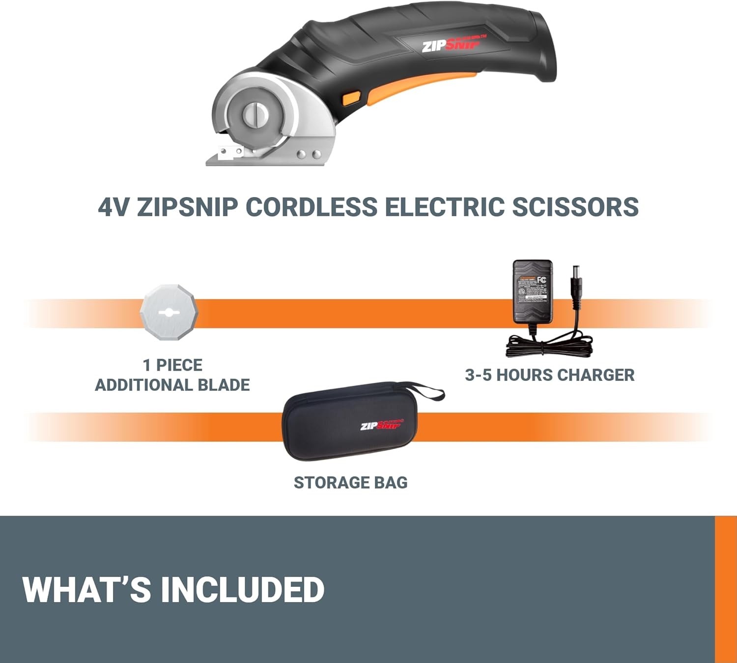 Worx Zipsnip Cordless Electric Scissors, Rechargeable Cardboard Box Cutter, 4V Powerful Fabric Scissors with 2 Safety Blades & Storage Bag WX082L.2[Stronger and better scissors] So what is the ZipSnip? They’re cordless electric scissors. They can cut tougher material with far less hand strain than manual scissors. [Added portability] With a customized portable case for your zipsnip cordless electric scissors and all