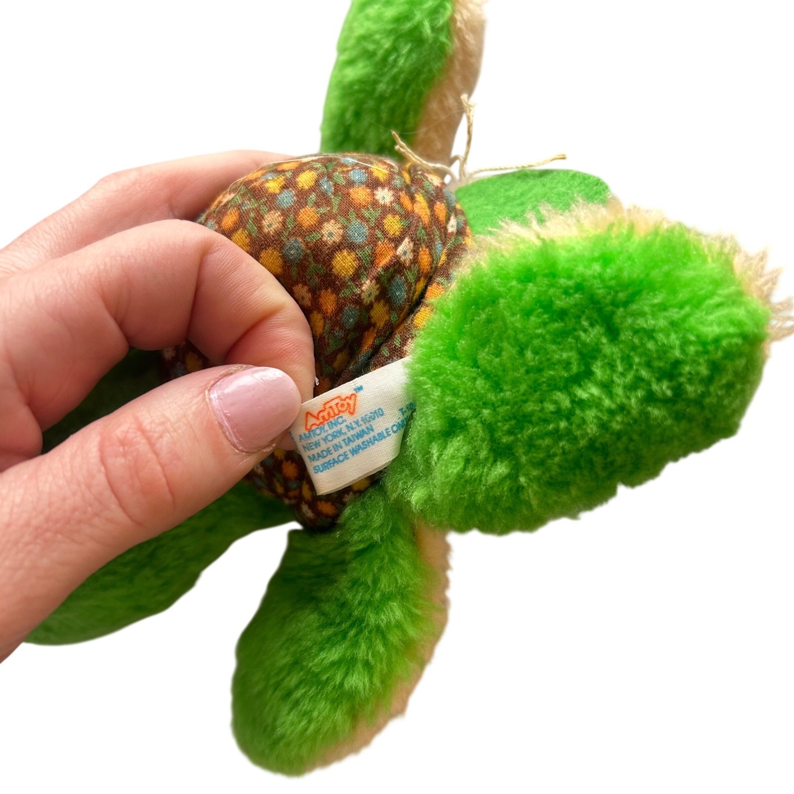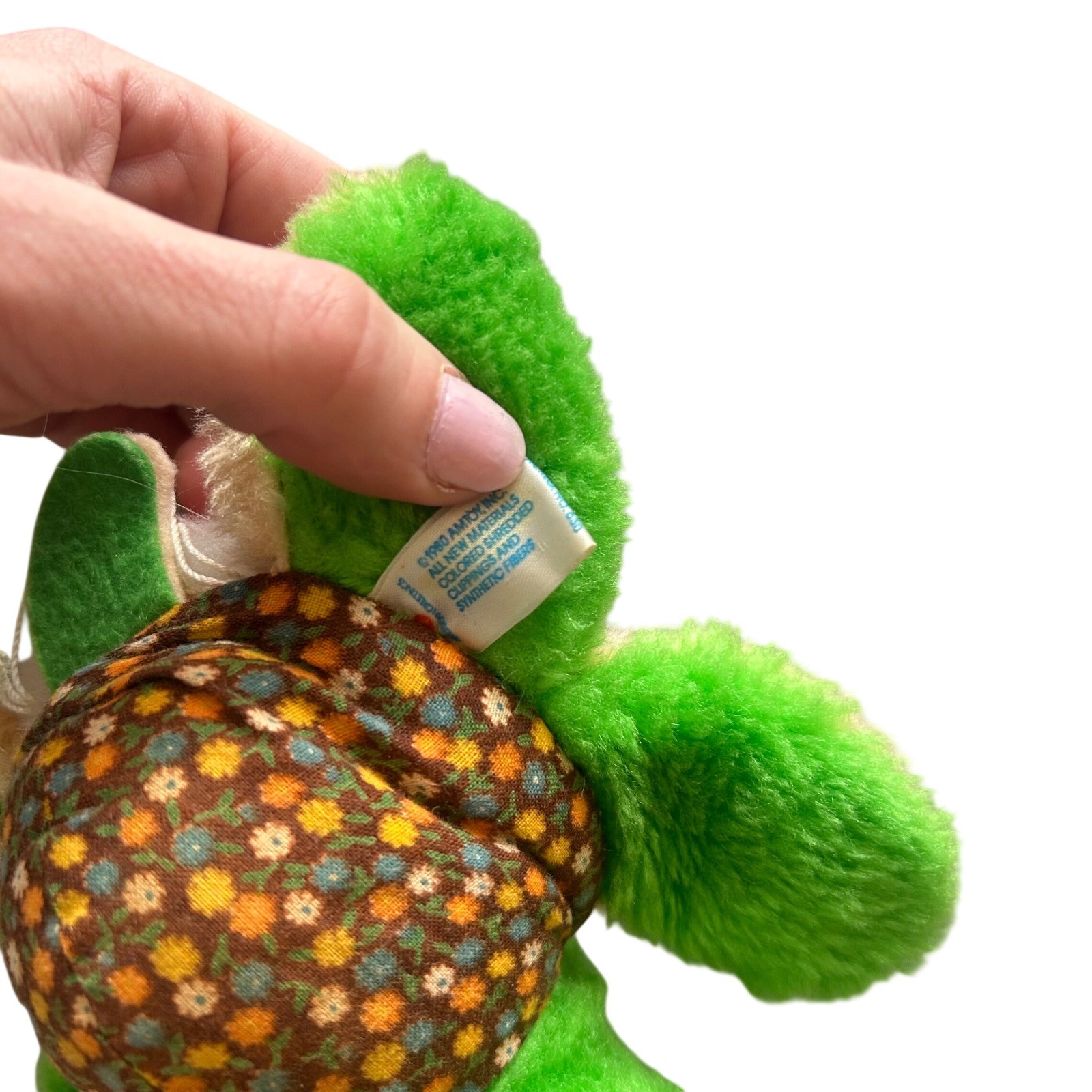 Vintage 1980 Amtoy reversible plush toy transforms from a green turtle with a brown floral shell into a tan bunny with a red floral pattern. This unique 2-in-1 stuffed animal features classic 80s aesthetic with vibrant colors and charming ditsy floral prints on the fabric shells. It is in good vintage condition with light wear consistent with age.Measurements:• Length: 8"CottagecoreGrandmacore80s ToysVintage PlushReversible ToyAmtoyFloral PrintKitschNostalgicStuffed AnimalCollectibleGreen TurtleTan BunnyRetro DecorBrand: AmtoyYear: 1980Character: Turtle / BunnyColor: Green, Tan, Red, BrownPattern: FloralMaterial: Synthetic FibersType: Reversible PlushSize: 8 inchesVintage: YesCountry of Manufacture: TaiwanAll items come from a smoke free, golden retriever dog friendly home. All of items unless NWT or Dry Clean Only are washed with Tide. We try our best to disclose any flaws with items, if we miss something please reach out and let us know.