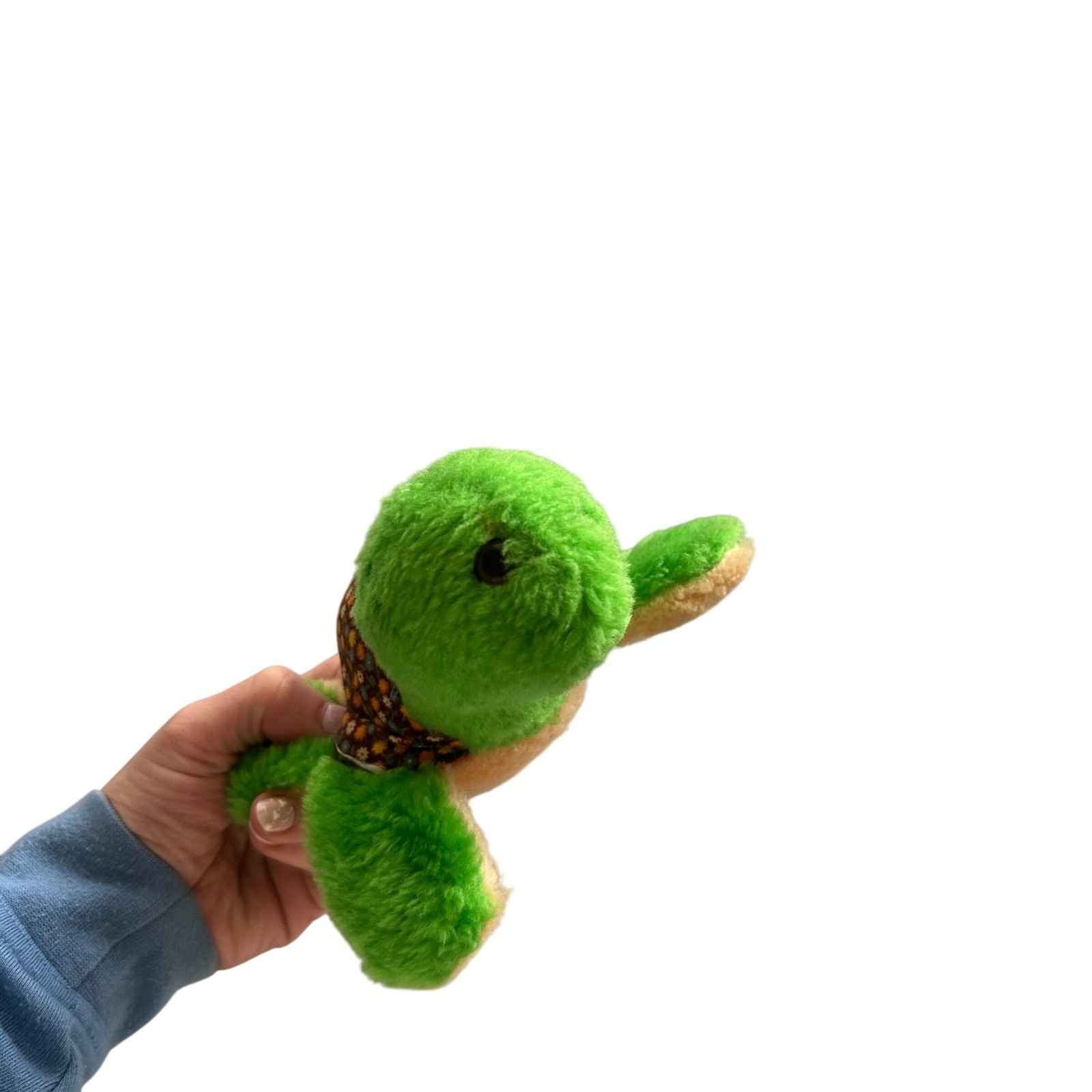 Amtoy Reversible Plush 1980 Vintage 8in Green Tan Floral Turtle Bunny Toy