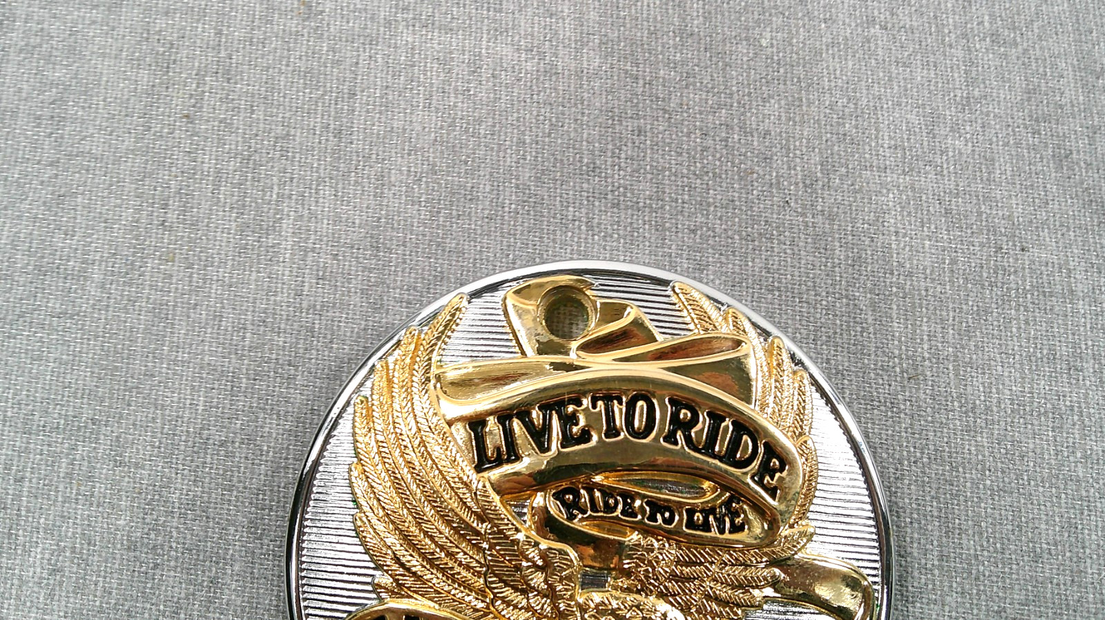 This timing points cover fits Harley Sportster models; check the listing for exact year and fitment details. It features a chrome finish with a Live To Ride Eagle Spirit Gold design. Item is in good condition, with mounting holes located at the top and bottom. No additional specifications or measurements are provided, so check the listing for details on compatibility, hardware, and any signs of wear. Price is $32.00 USD and it ships with free shipping.