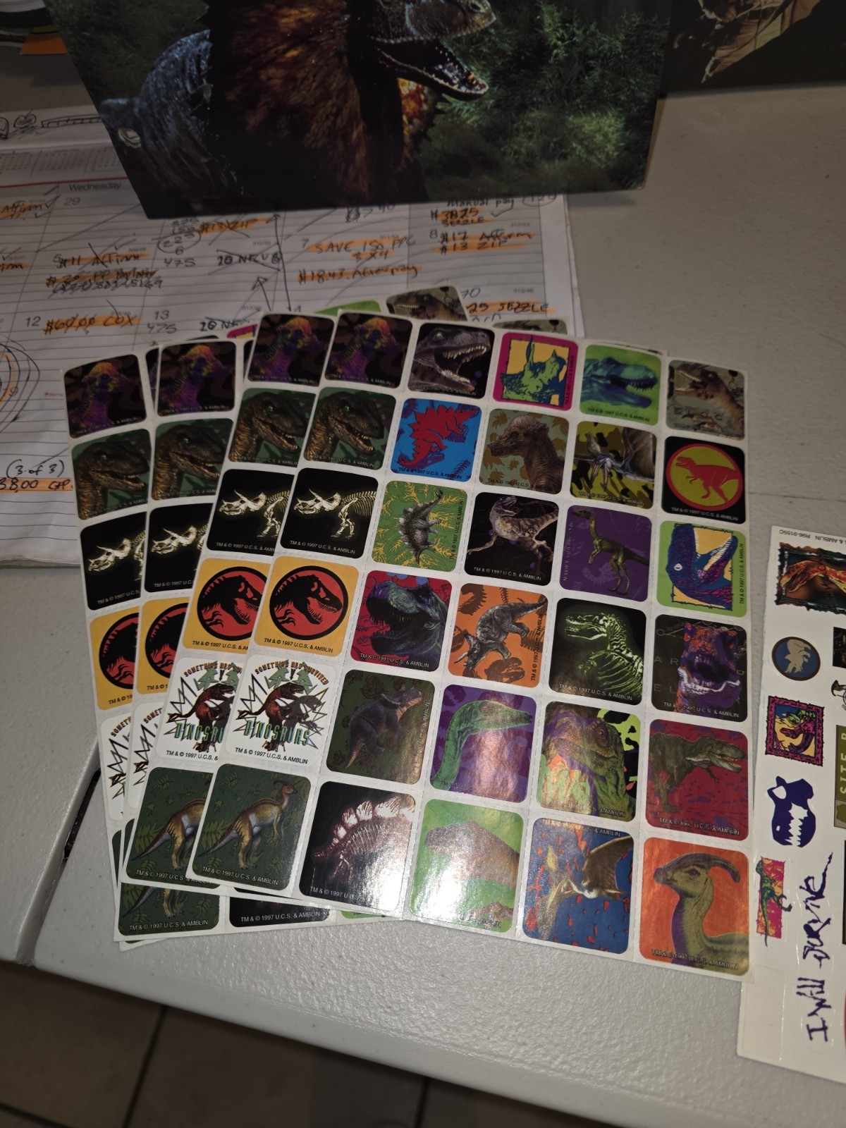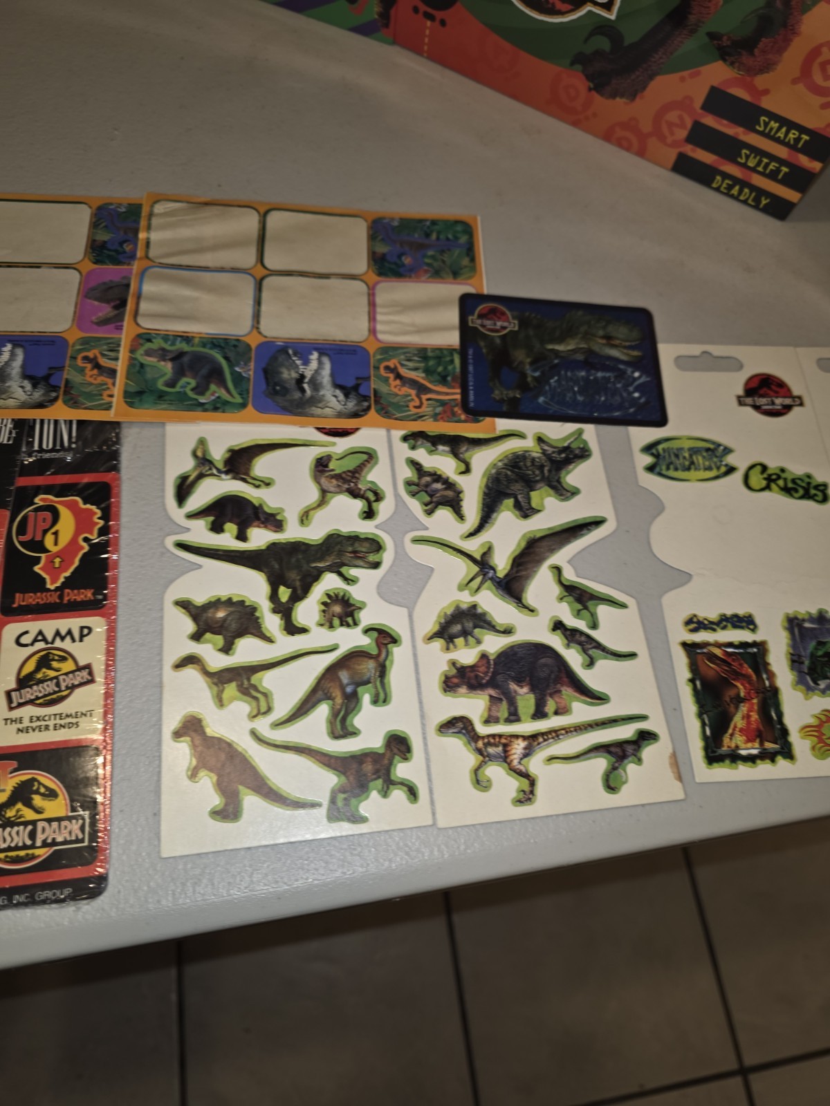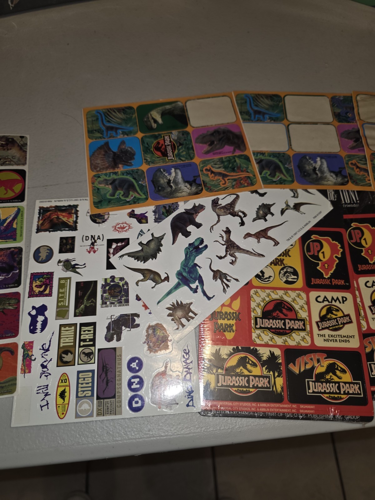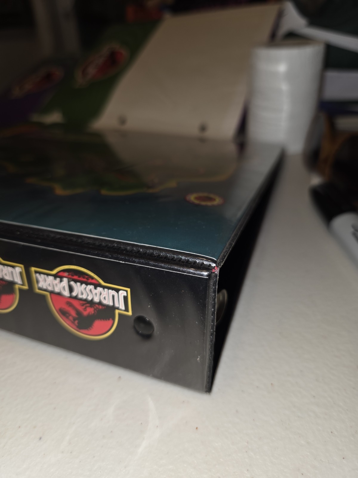 Missing some stickers. You can see in the pictures . Binder and folders are in good condition. The Jurassic Park Binder Sticker and Folder Bundle features items related to the Lost World movie released in 1997. This collectible set includes a binder and folder specifically designed for storing non-sport trading cards from the Jurassic Park franchise. The bundle offers a nostalgic touch for fans of the iconic dinosaur films, allowing them to organize and display their card collection in a fun and unique way. Perfect for collectors looking to add a touch of nostalgia to their memorabilia collection.