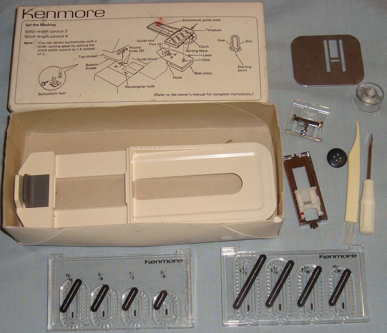 Vintage Kenmore sewing machine buttonhole fitting kit set tools stitch control