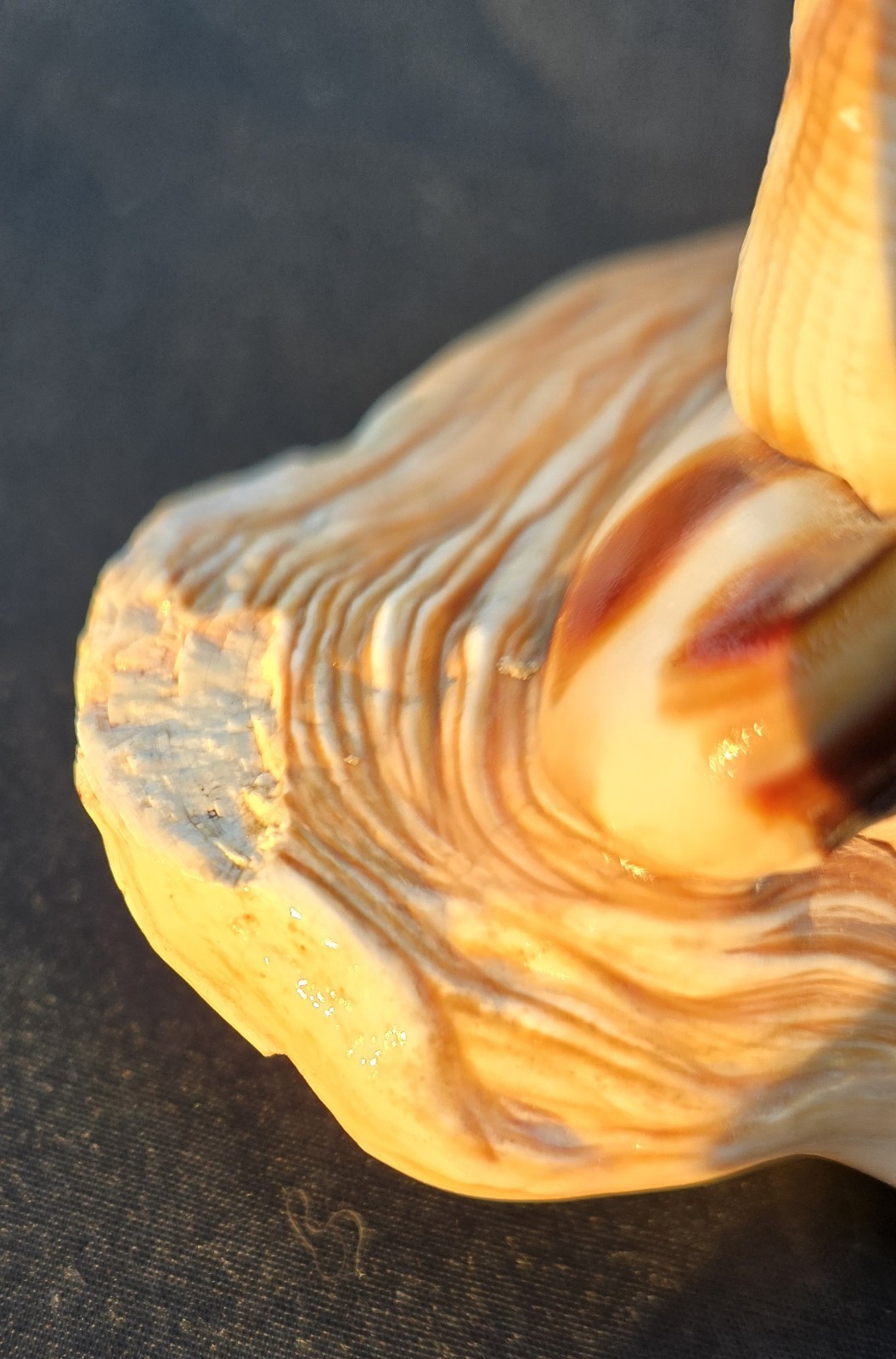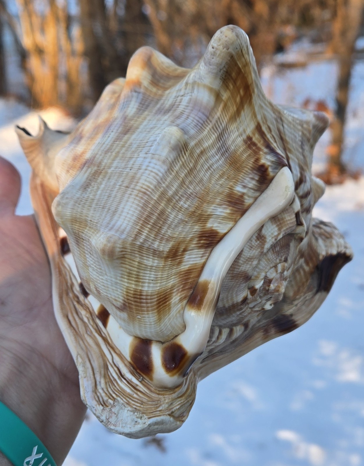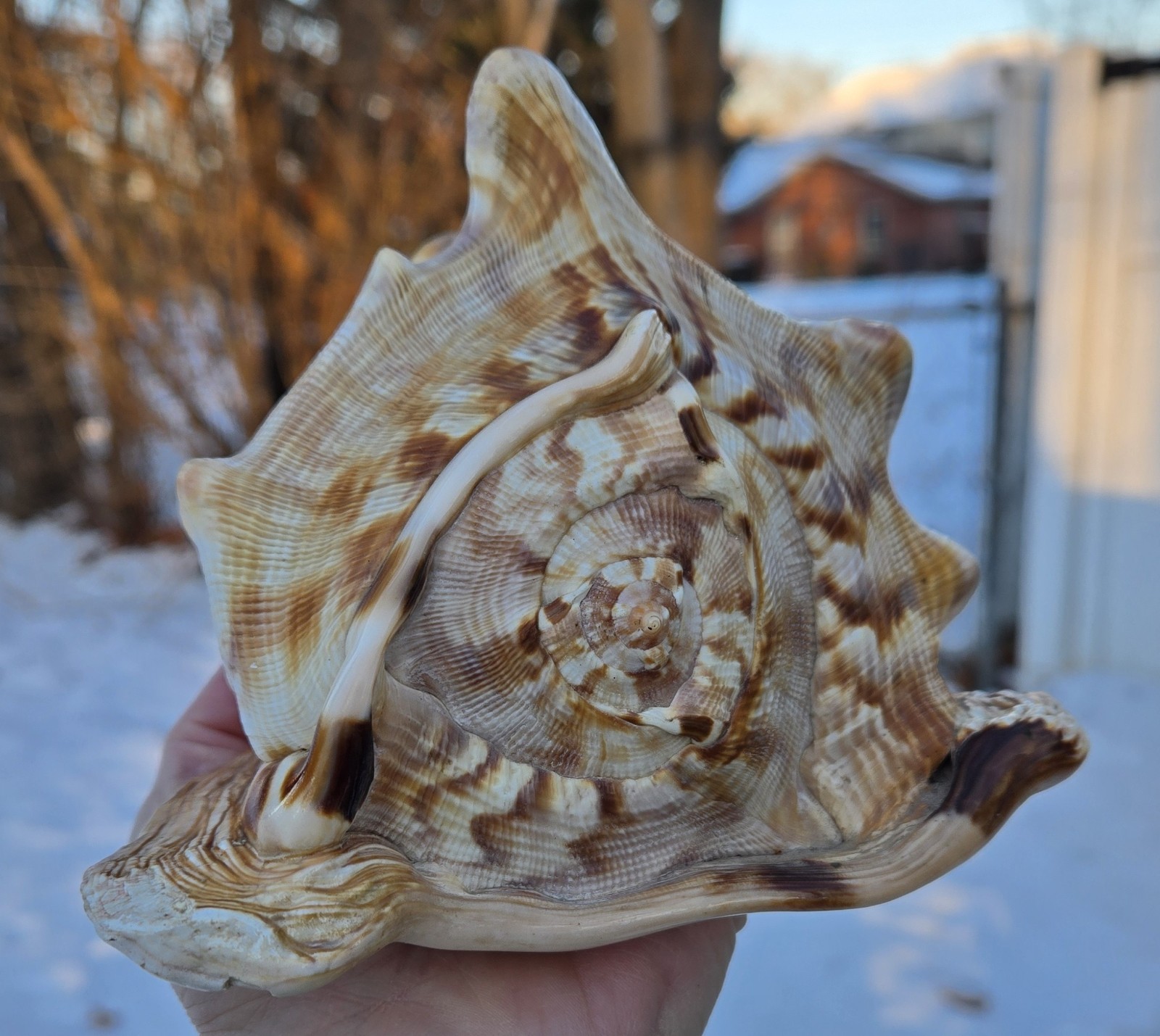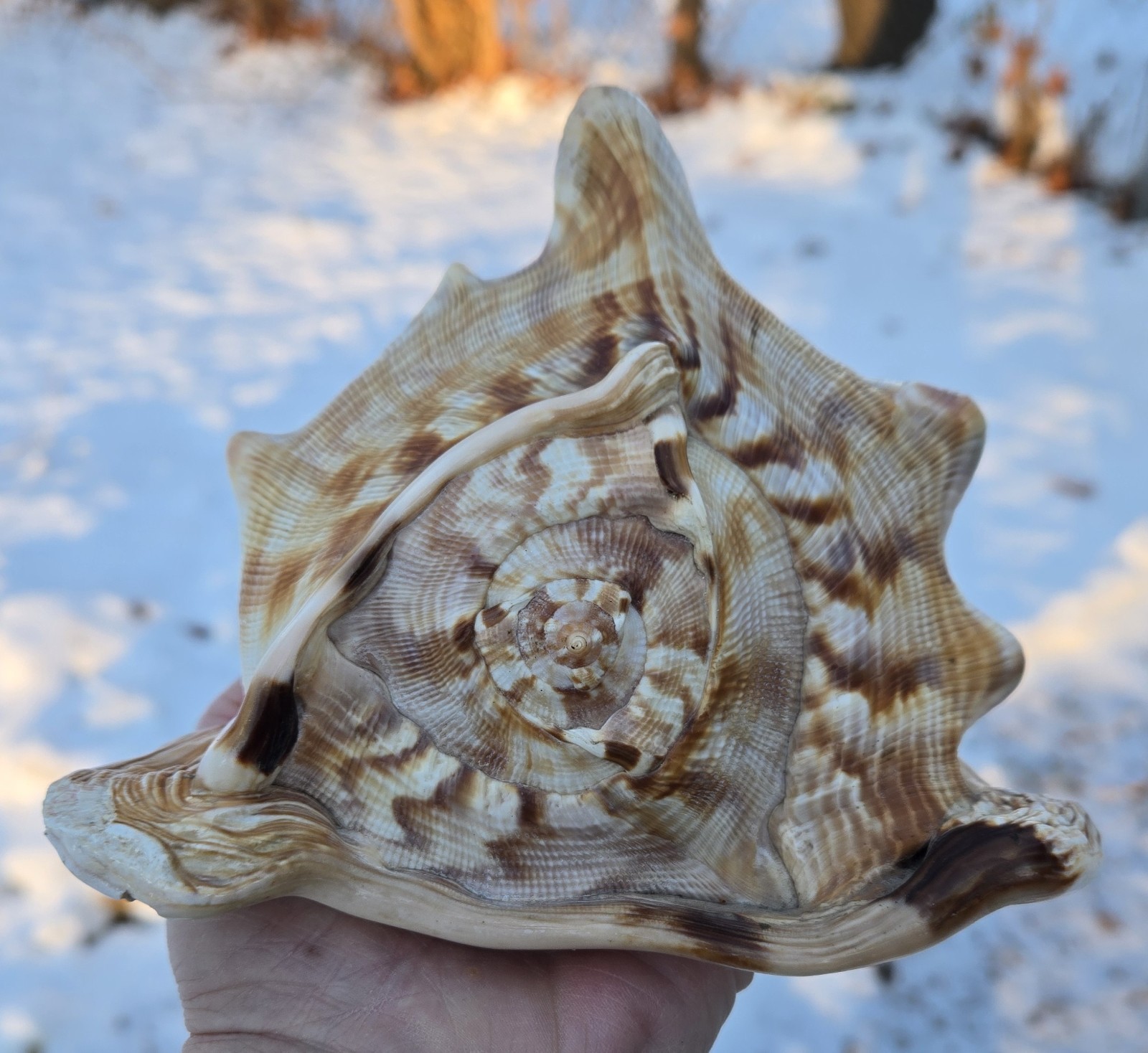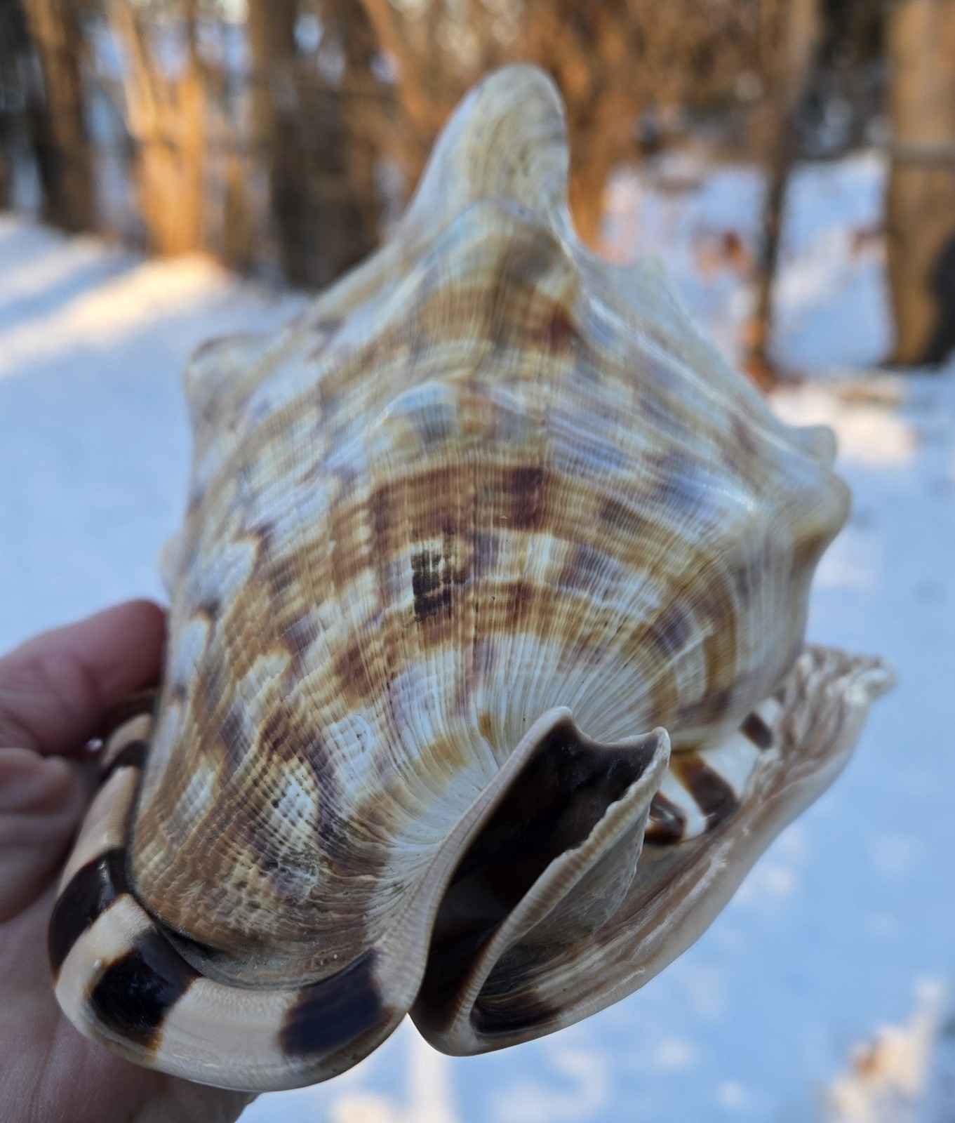 this is a gorgeous vintage decorative large Seashell with just a beautiful pattern, has one chip that I've pictured however it takes nothing away from the natural beauty of this shell , it amazes me that this was once a home to some sea life , this is a beautiful piece to display among your plants or on a table , bathroom or quite frankly anywhere, if I had room for one more ide keep it , but I don't...thankyou for looking and feel free to message with any questions.