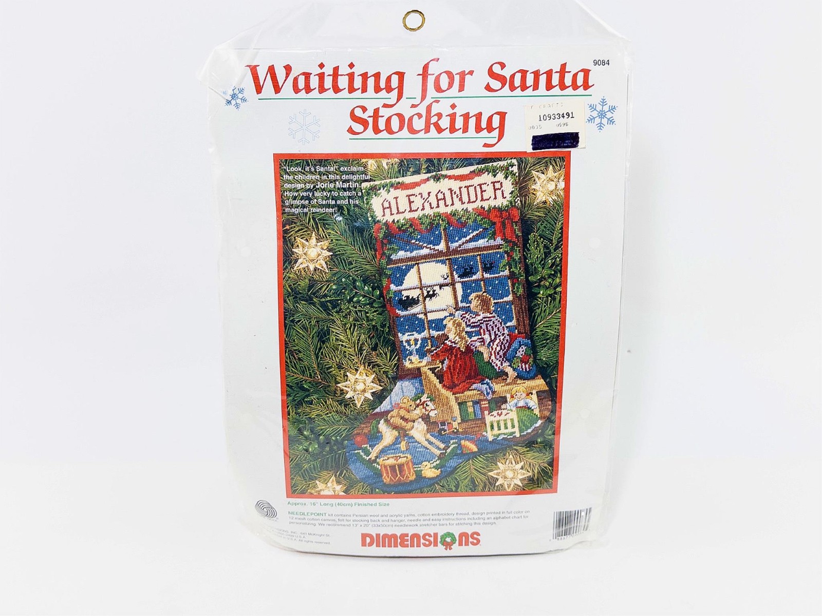 This listing is for a Dimensions Waiting For Santa needlepoint stocking kit, model #9084, sized 16 inches. Condition is new and sealed. It is a crafts kit intended for needlepoint stocking projects; check the listing for details on what materials and instructions are included. The item ships with free shipping. Please review the photos and the listing details for the most accurate information about contents, packaging, and any included accessories.