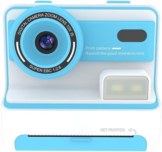 color pens for DIY✔ Creative Fun – 8 filters, 19 stickers, puzzles & frames (32GB SD card included)✔ Dual-Lens Camera – 36MP photos + 1080P videos with 2.4" IPS screen✔ Long Battery Life – 3H shooting/2H video (1200mAh Type-C rechargeable)✔ Complete Kit – Includes paper, pens, SD card & lanyardPerfect For:Kids 3-12 yearsCreative play & memory keepingBirthday giftsAbout this itemInstant Print: HOMELYLIFE kids instant print camera adopted advanced inkless thermal printing technology, simply press the print button to get black and white printed photos in seconds. Colour pens are included so kids can DIY their photos, using their imagination and creativity. Supplied with 3 rolls of BPA-free thermal printing paper for hundreds of photosCreativity Infinite: This digital camera for kids is equipped with 8 scene filters, 7 jigsaw puzzles, 19 stickers and photo frames, and 3 print densities for taking and printing a variety of photos with different effects for more fun. The included 32GB SD card ensures plenty of storage space for thousands of photos and videos, allowing kids to record their memories without worryMulti-functional Design: The kids camera has front and rear 36MP dual lens, supports 1080P HD video recording and selfies, and the 2.4-inch IPS screen provides better colour display. In addition, it also features 10x zoom, flash, time-lapse, continuous shooting, playback, music and more to meet all your needs and capture every special moment in your child's developmentPowerful Battery: Built-in 1200mAh rechargeable battery with type-c charging cable. It can shoot continuously for 3 hours or record videos for 2 hours after a full charge. Note: The included cable can only be used for charging, you can use your own cable or card reader to transfer photos and videos from SD card to laptop/computer/mobile phonePacking List: 1 x instant print camera, 1 x 32GB SD card, 3 x rolls of printing paper, 5 x colour pens, 1 x sticker, 1 x USB cable, 1 x lanyard, 1 x instruction manual. Compact design and easy to operate, an ideal Christmas, New Year, birthday gift for boys and girls aged 3 to 12 years old.HOMELYLIFE Children's Digital & Instant Print CameraIt's not just a kids‘ digital camera that shoots crisp 1080P high-resolution video and 36 megapixel photos, it's also a kids’ print camera that instantly prints black-and-white photos, printing black and white photos in seconds.This kid's camera will help children explore the world, record every meaningful moment of their childhood, have fun taking pictures and photography, develop creativity and improve their hands-on skills. As a birthday gift, school reward, Easter, Thanksgiving and Christmas gift, it is the most thoughtful and attractive gift for kids!Warm Tips:1. Please fully charge the children's camera before use!2. The included 32GB SD card and one of the paper roll are pre-installed in the camera!3. In order to get a better printing effect, you can adjust the printing density of the camera according to the light conditions!4. Please make sure that the paper roll is installed in the correct direction, because only one side of the paper roll has printing function! (Please check out the video)5. If the camera can not print, please check whether the paper is installed correctly. Pull the photo paper out of slot a bit before printing.6. Reset: If there are streaks on the screen or the kids camera freezes and can't shut down, please use a thin needle to reset it through the round hole on the sd card slot and return to normal!7. The included cable can only be used for charging, you can use your own cable or card reader to transfer photos and videos from SD card to computer!8. Music mode: you need to save music to SD card from computer; long press up and down button to adjust volume.
