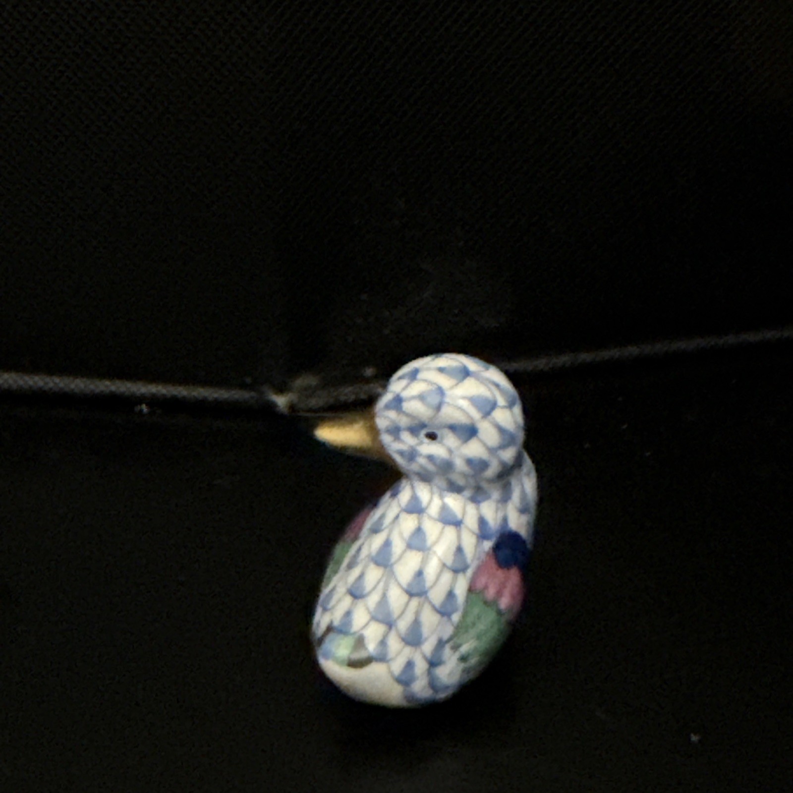 Vintage Herend Hungary Porcelain Duck Duckling Blue Fishnet Gold Trim 15249