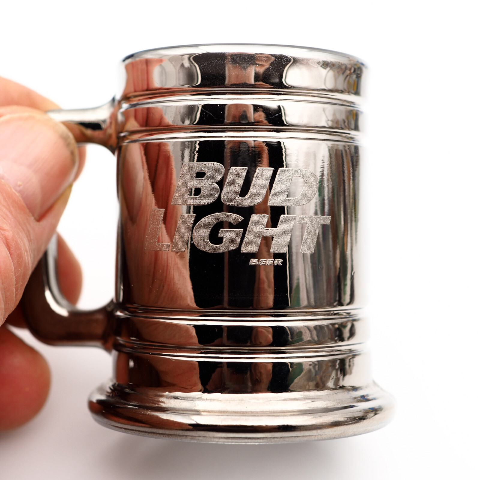 Bud Lite Beer 1998 shot glass clear silver metallic finish Stein/mug Official product TM/MC Anheuser-Busch,Inc perfect condition..." no box"