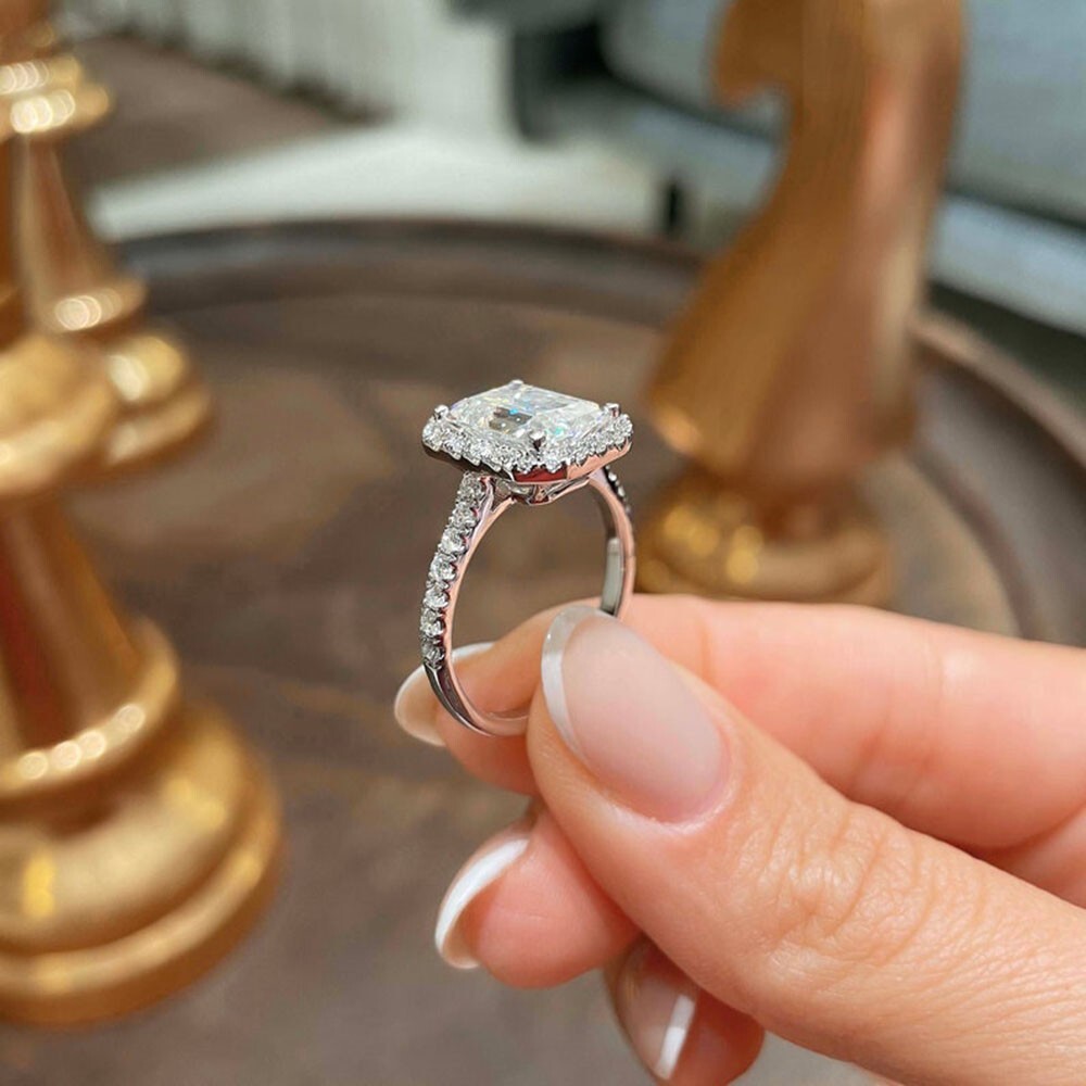 Wedding Moissanite Women Ring 14K White Gold Emerald Cut 4.50 Carat Size 5 6 7 8