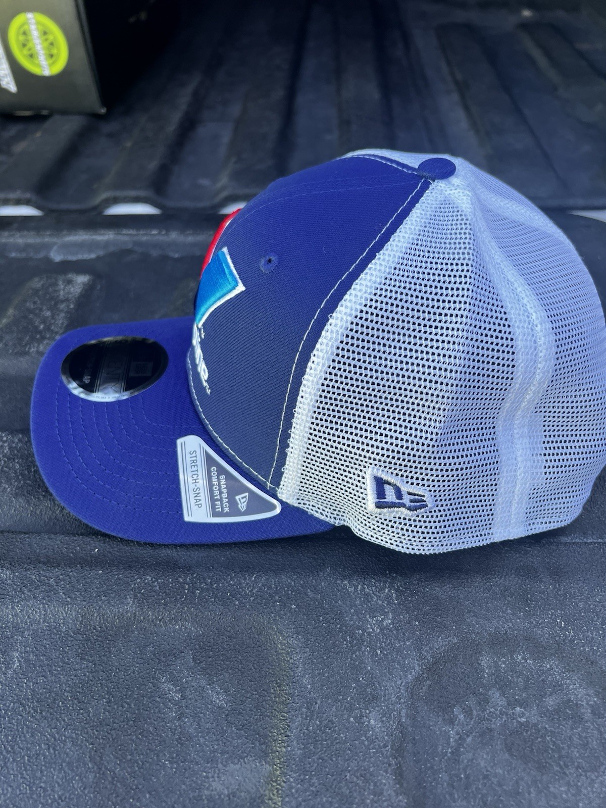 The William Byron Valvoline Partner 9SEVENTY Stretch-Snap Trucker is a white adult cap specifically designed for fans of NASCAR auto racing. Featuring the Valvoline branding and NASCAR league affiliation, this hat is a stylish and comfortable accessory for show off your support for William Byron and the sport of auto racing. The stretch-snap design ensures a perfect fit and natural comfort for all wearers.