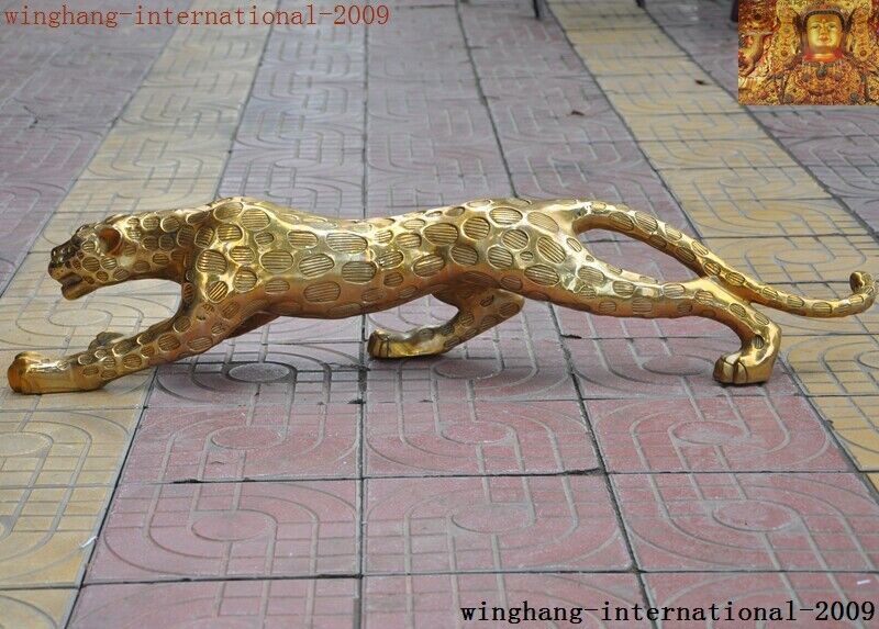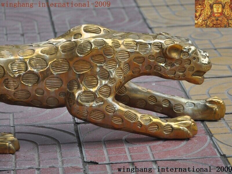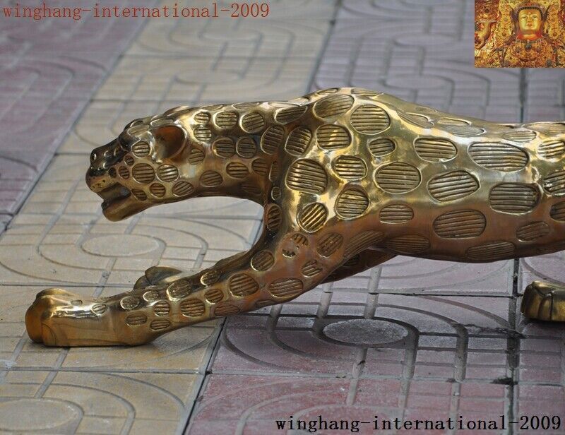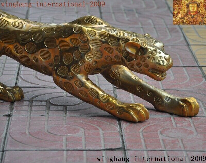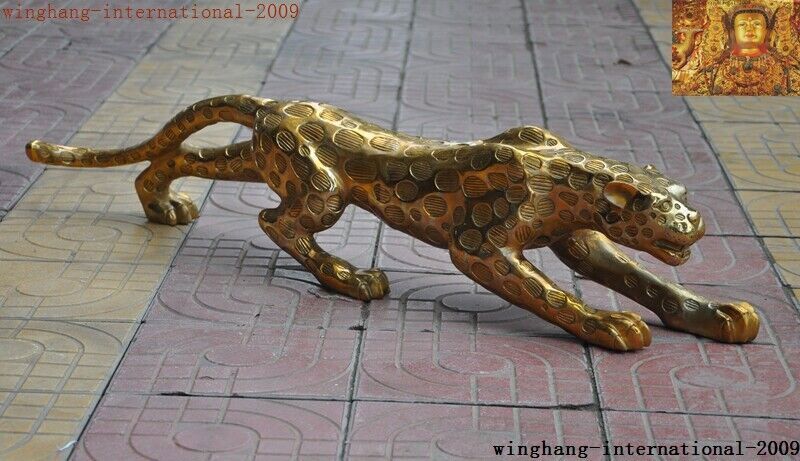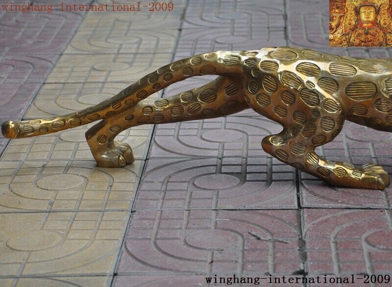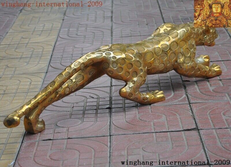 China Brass Fengshui Leopard Panther Statue Collectible Decor
