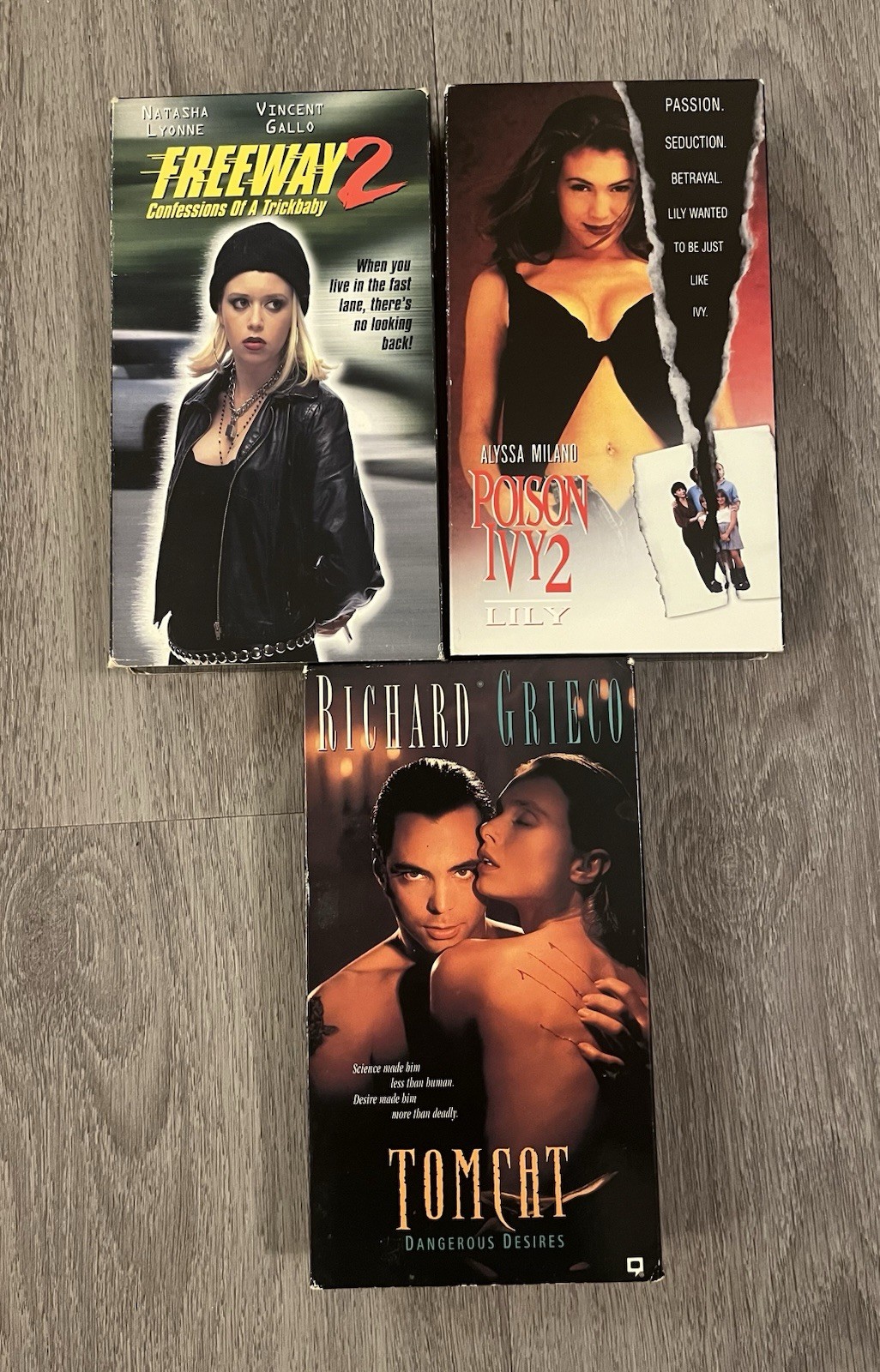 CULT SLEAZE VHS LOT (3) FREEWAY 2, POISON IVY 2, TOMCAT - TESTED & REWOUND!!