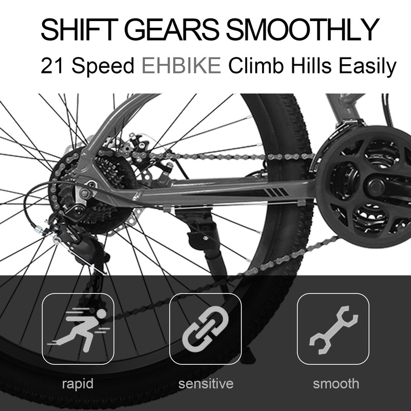 size of 26 inches, it is suitable for boys over approx. 5'1'' in height, but also for men. The model is a real eye-catcher, which Leaves a lasting thought thanks to its high-quality painted finish. 【21 Speed Derailleur】Finger-type shifter 3 rears front derailleur and 9 rears derailleur, easier to pedal for speed and acceleration. More effortless handling of uphill and downhill slopes, providing faster speeds on smooth roads. 【Durable & Lightweight Bike】Aluminum alloy body (much lighter than steel) with rust-proof high carbon steel parts provides more rolling momen+tum. 36lb is light enough for an adult to carry with one hand on his shoulder. 【Excellent Performance】26” tire can handle hilly terrains and the gear change is awesome and smooth. Perfect for mountain,also effective on the road, trail, city, beach or the snow etc. Front and rear double disc brakes perfectly increase safety and controllability for bikers. 【 Product quality】: Specialises in the production of high-quality bicycles that can withstand daily and special loads. Therefore, only high-quality components are installed, which contribute to the safety and longevity of our moutain bike. 【Easy for Assemble】 85% pre-assembled,easy to assemble,free pedals,required assembly tools and KICKSTAND included. 【Best Customer Service】 Has professional customer service. We provide after-sales service for 1 year, during this period, we will give corresponding solutions to your problems and help you solve them. Feature: Color:Silver. Frame Material:Aluminum Alloy Wheel Size:26 Inches Brake Style:Disc Number of Speeds:21 Tire: Spoke wheel. Product packaging size:136x71x20cm/53x28x8inch. Gross weight:19kg/42lb Net weight:16kg/36lb Weight Capacity:220kg/489lb Instructions: Because the