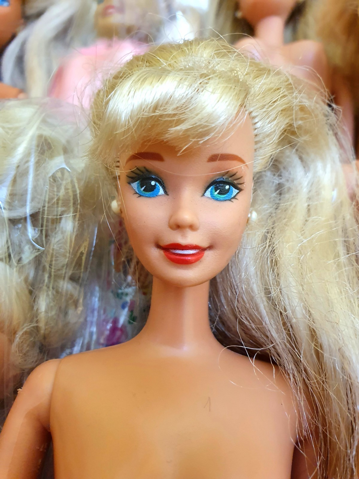 This product is a lot of 18 Barbie dolls from the 80s and 90s, with a mix of Mattel and other brands included. The dolls are vintage, featuring blonde hair and varying eye colors. The collection includes 11-inch fashion dolls with bendable limbs, making them suitable for collector purposes. Each doll is nude, without any personalized features or original packaging. Many of the dolls have details, so it's perfect to play and create a character or repair it, I'm doing a cleaning, so this is the cheapest lot. I will continue publishing, I make shipments only weekends, due to time. thanks 😀