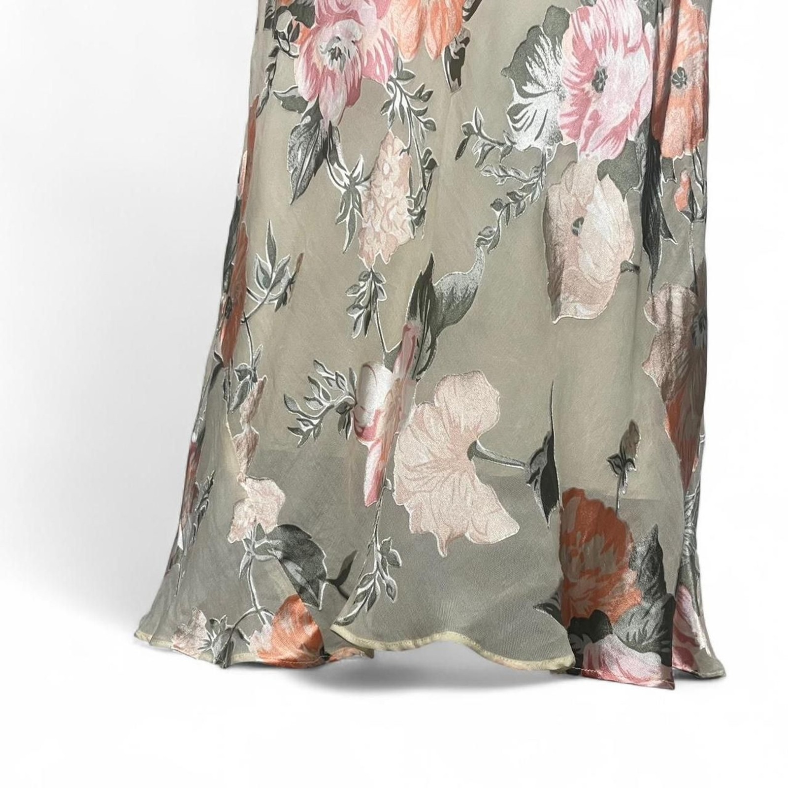 Casual Corner Vintage Silk Cream Pink Floral Midi Dress Velvet Details Size 8
