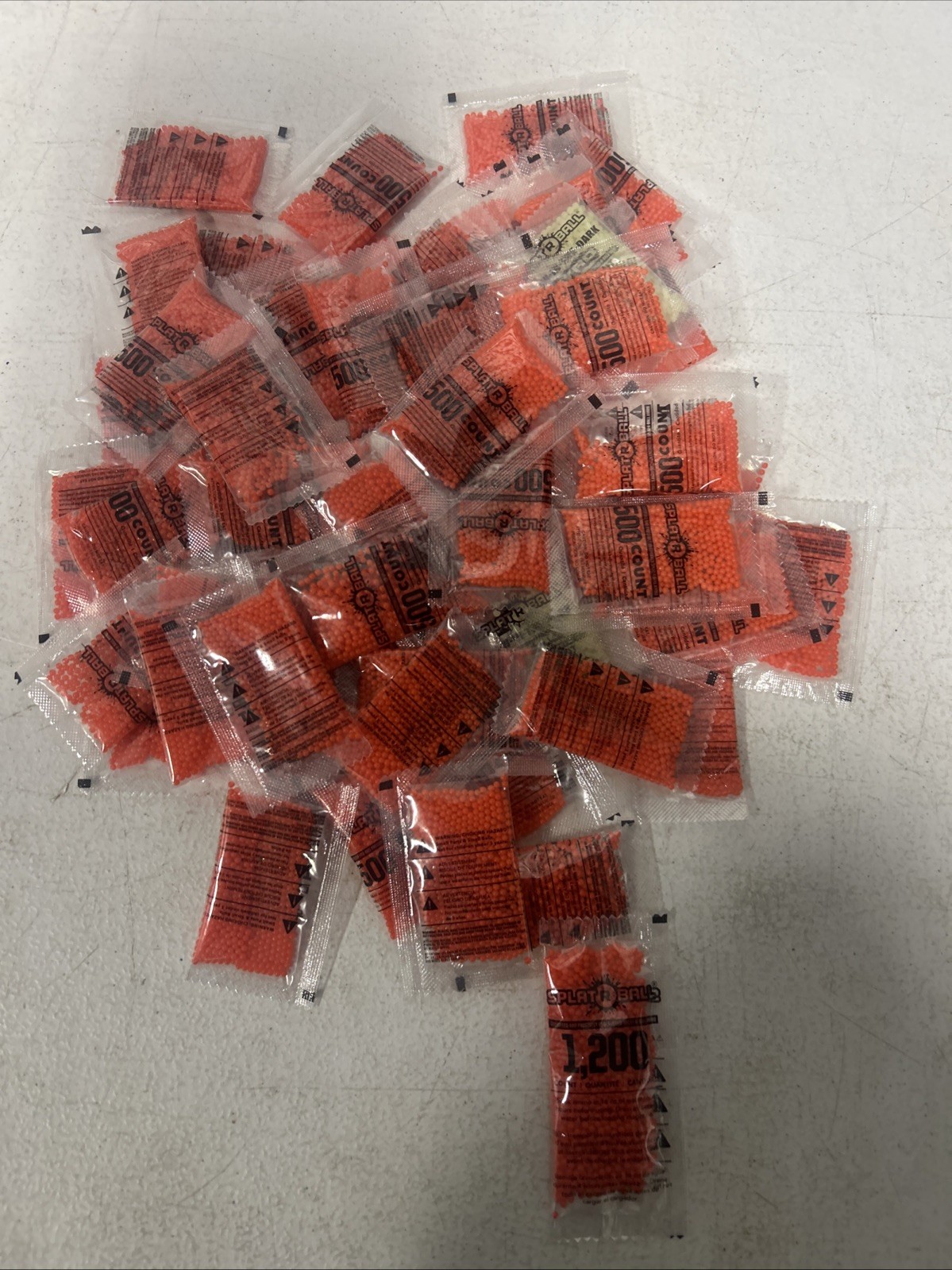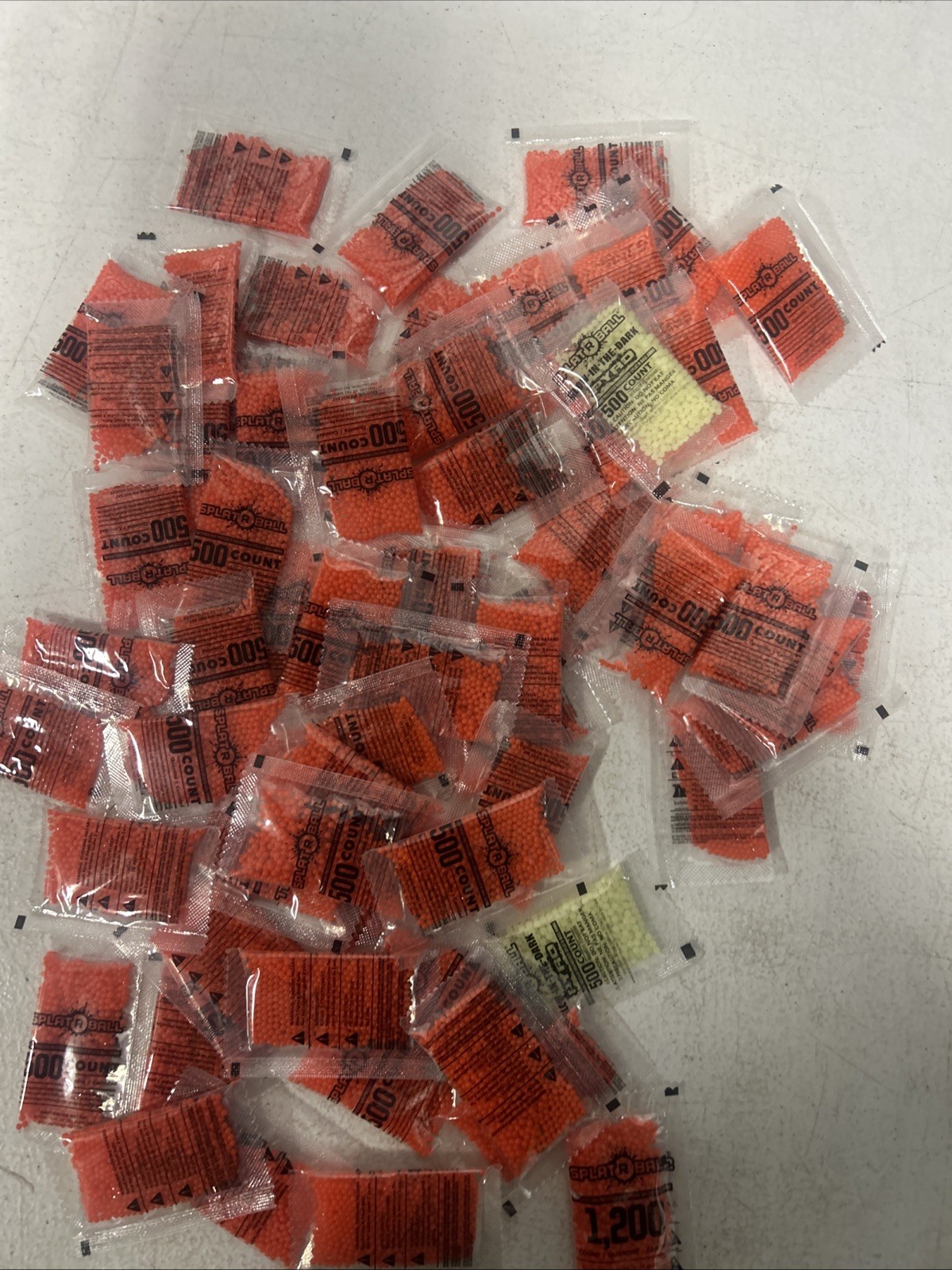 Splat-R-Ball Lot of Non Toxic Orange And Glow Ammo 7.5mm (37,200) rounds total)Items are in packs of 500. See photos for condition and item included.SU5-T21