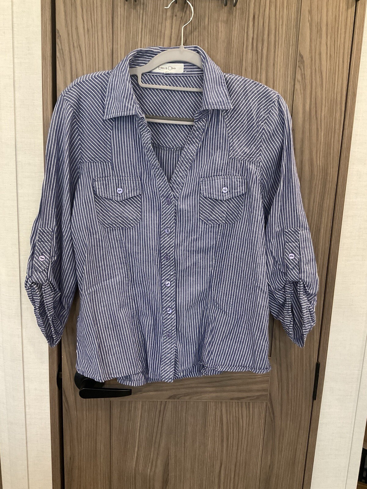 Eden & Olivia Womens Long Sleeve Button Up Collared Shirt Size Petite Large Specs