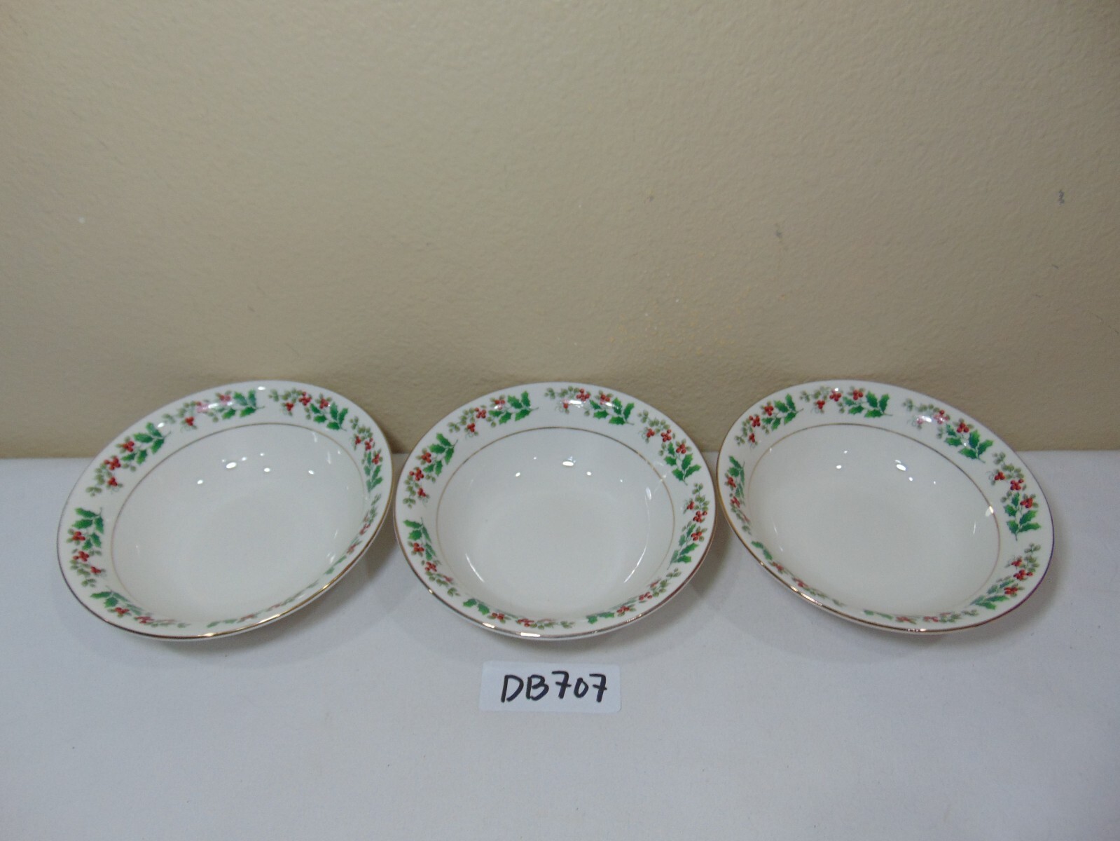 Lot of 3 GIBSON Cereal Bowls Holiday China CHRISTMAS HOLLY & BERRIES 6 1/2" Specs