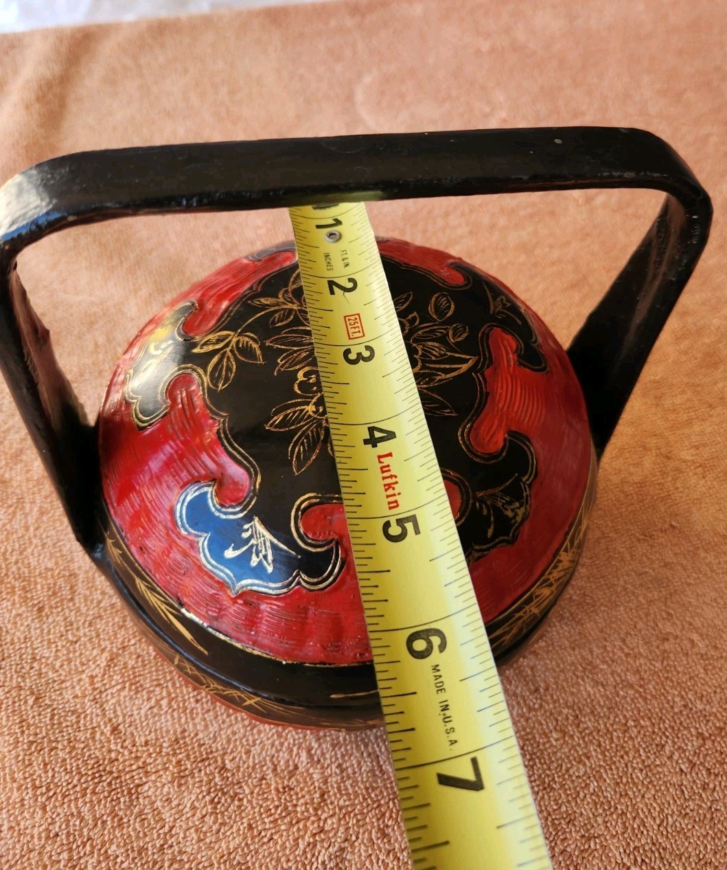 This vintage Chinese hand-painted lacquer bamboo wedding basket is offered as a collectible item in used condition. It features traditional black and red lacquer styling with decorative painted details. Ideal for collectors of Chinese folk art, wedding traditions, or vintage lacquerware. Check the listing for details on exact size, age, materials, and any signs of wear consistent with prior use. Priced at $65.00 USD, it includes free shipping, making it a convenient option for adding a distinctive vintage piece to a collection or display.