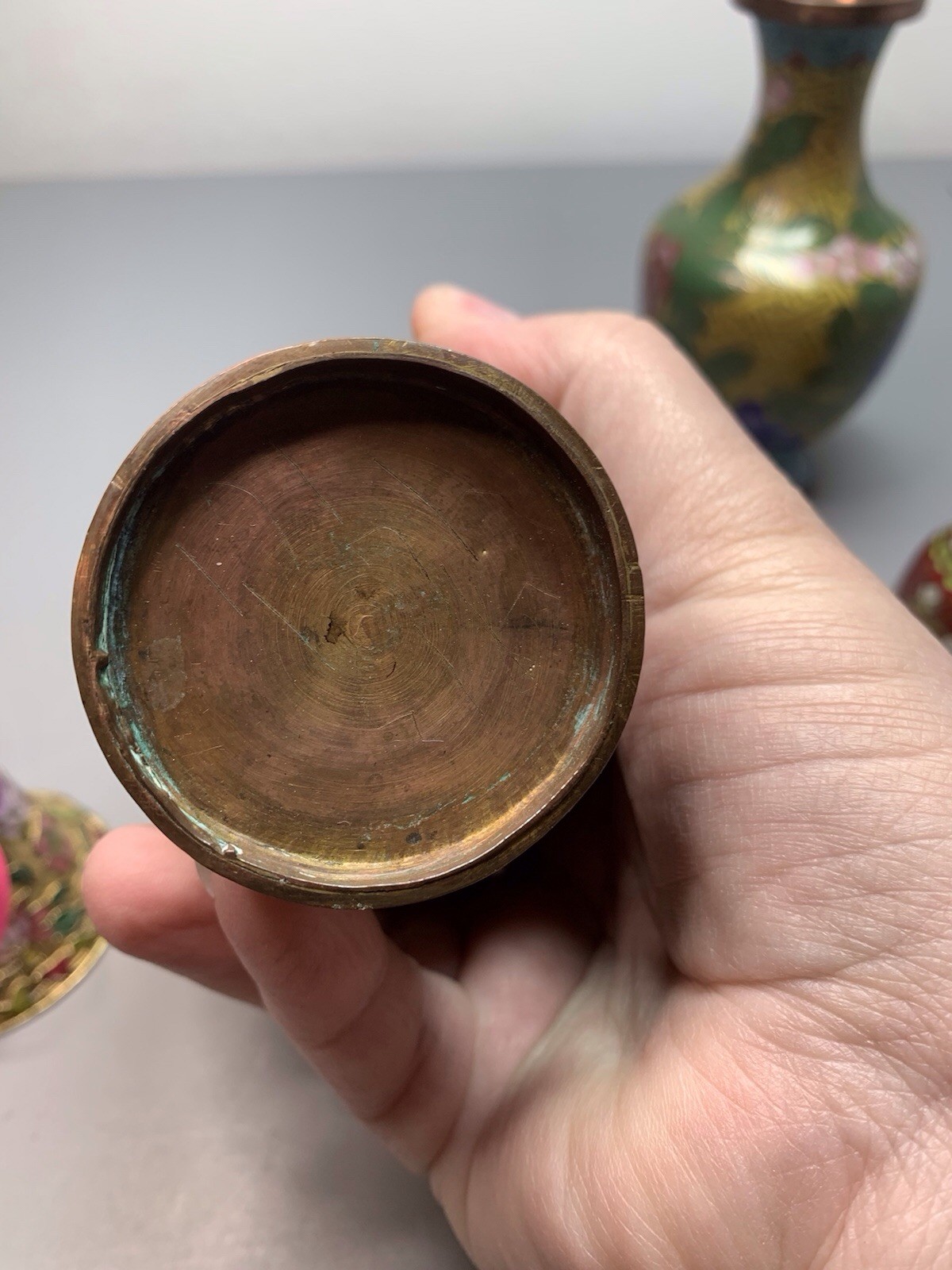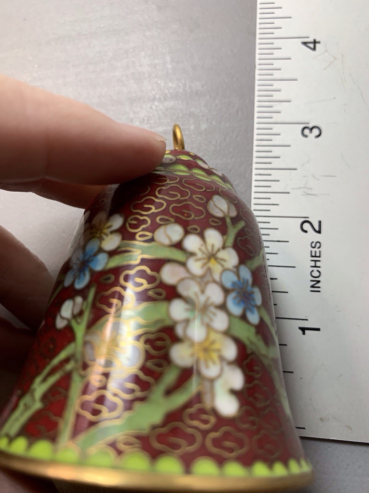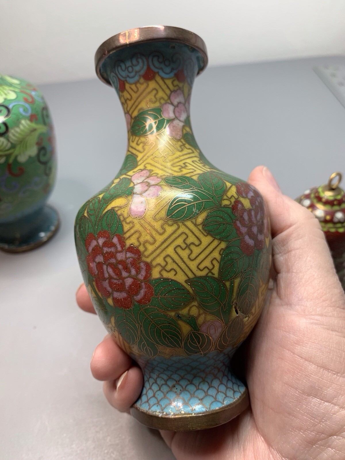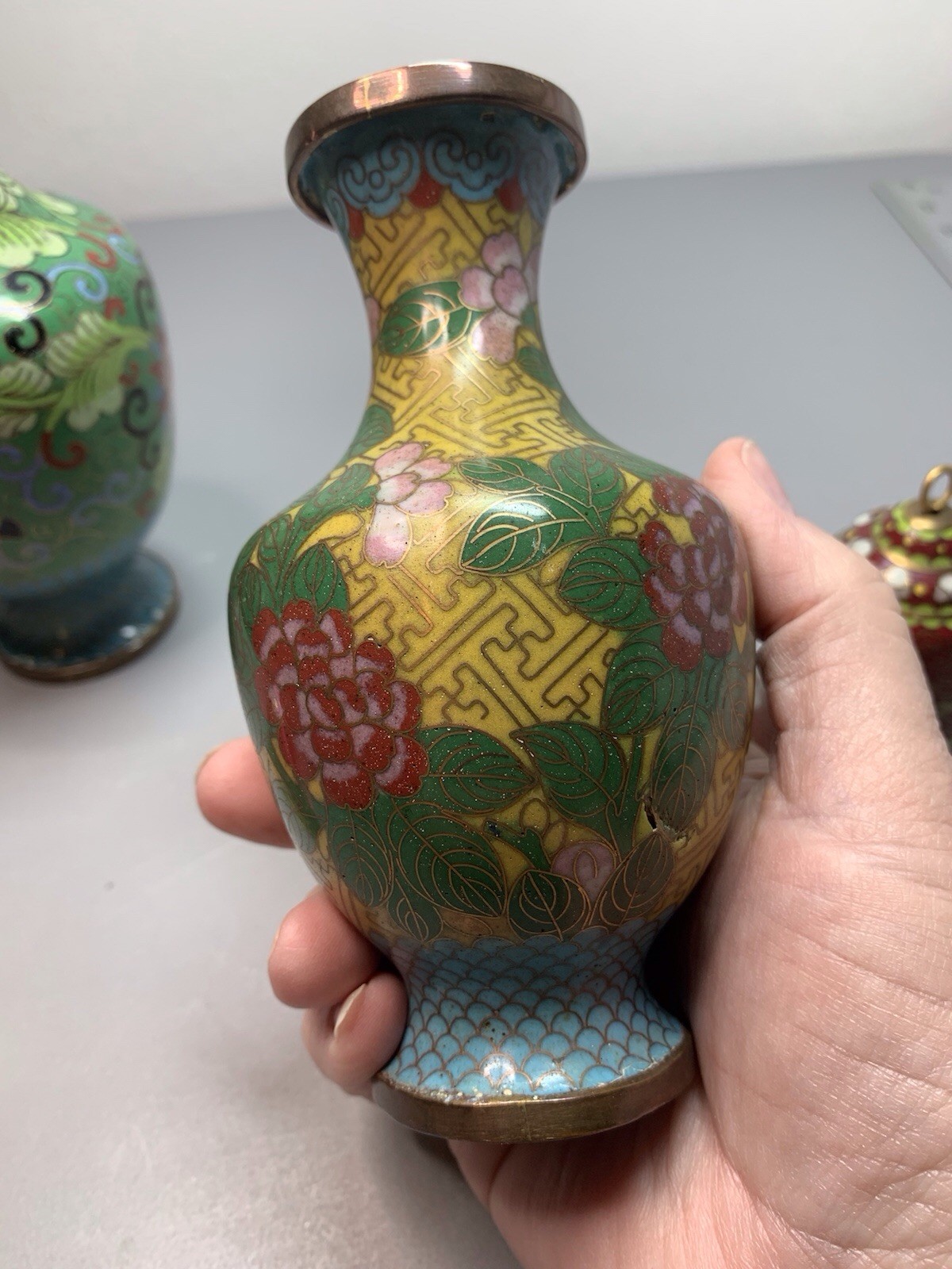 Cloisonne Brass Glass Enameled Vase Set of 2 with Bells, Collectible