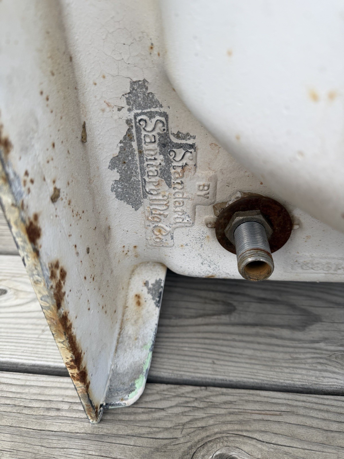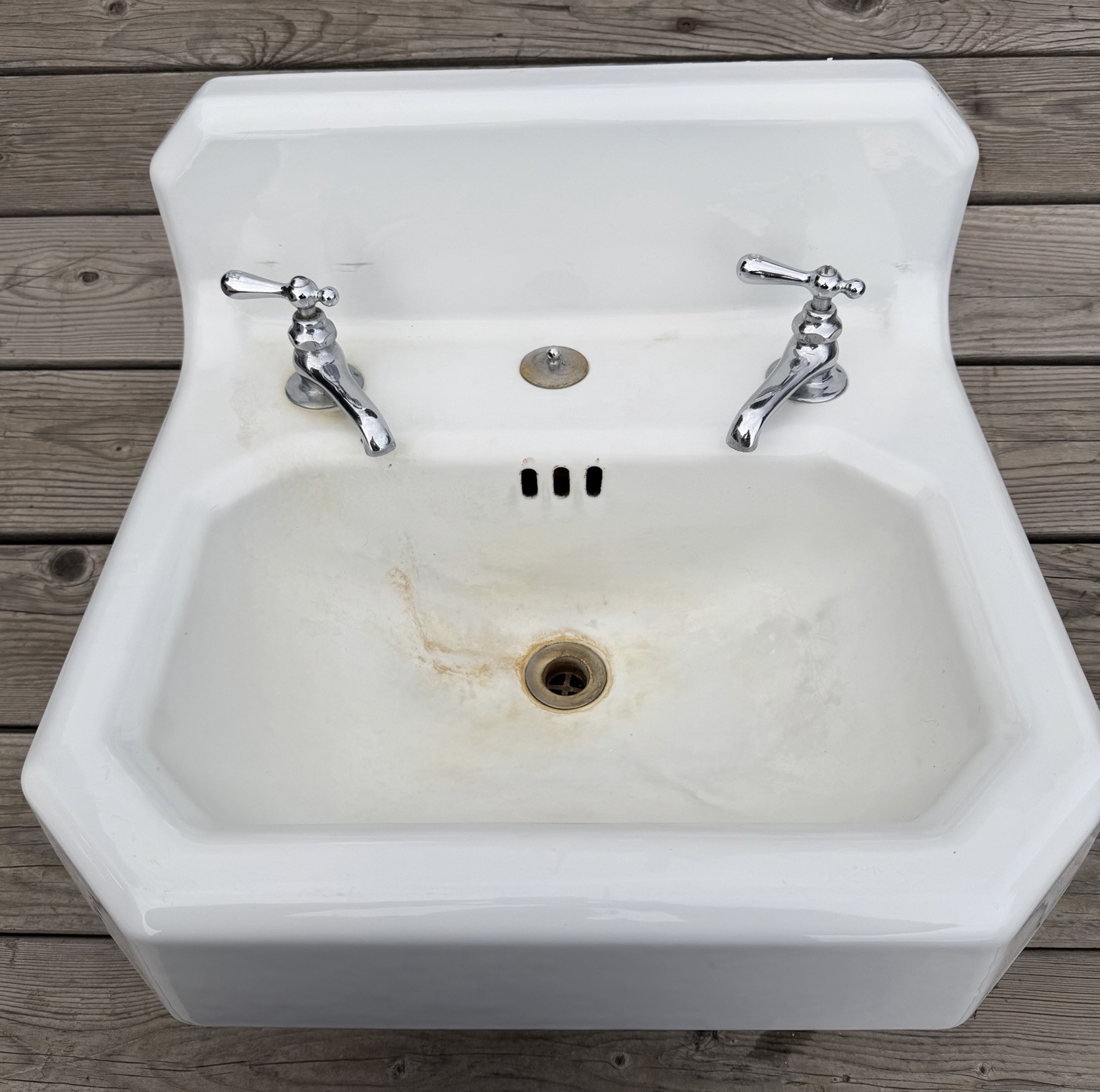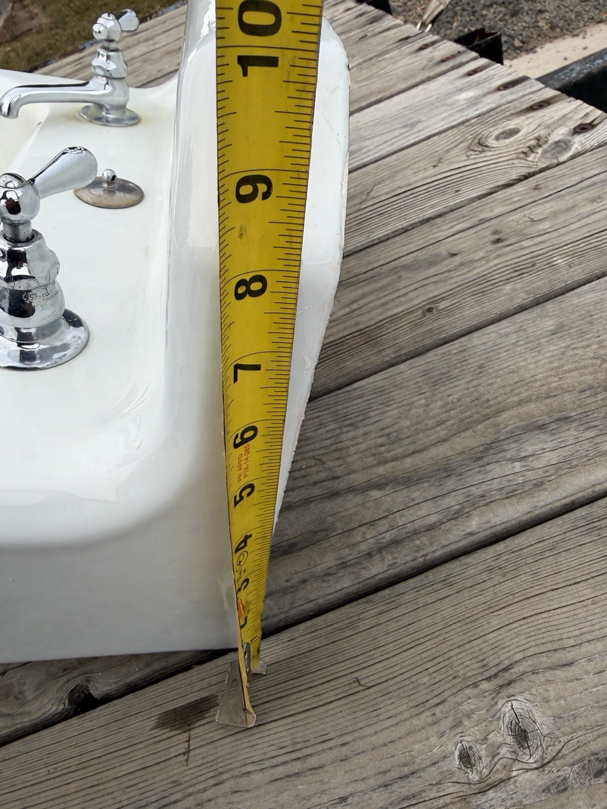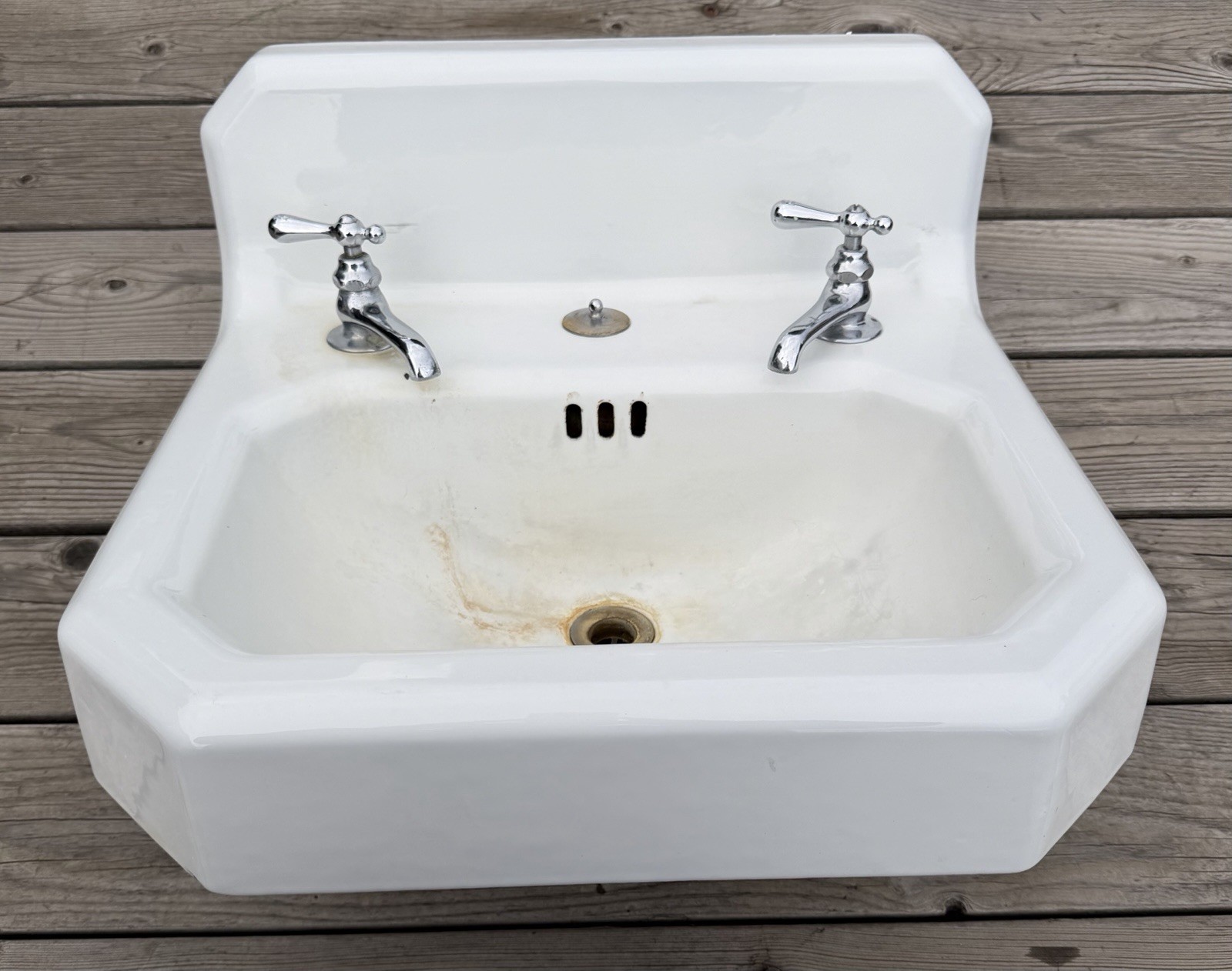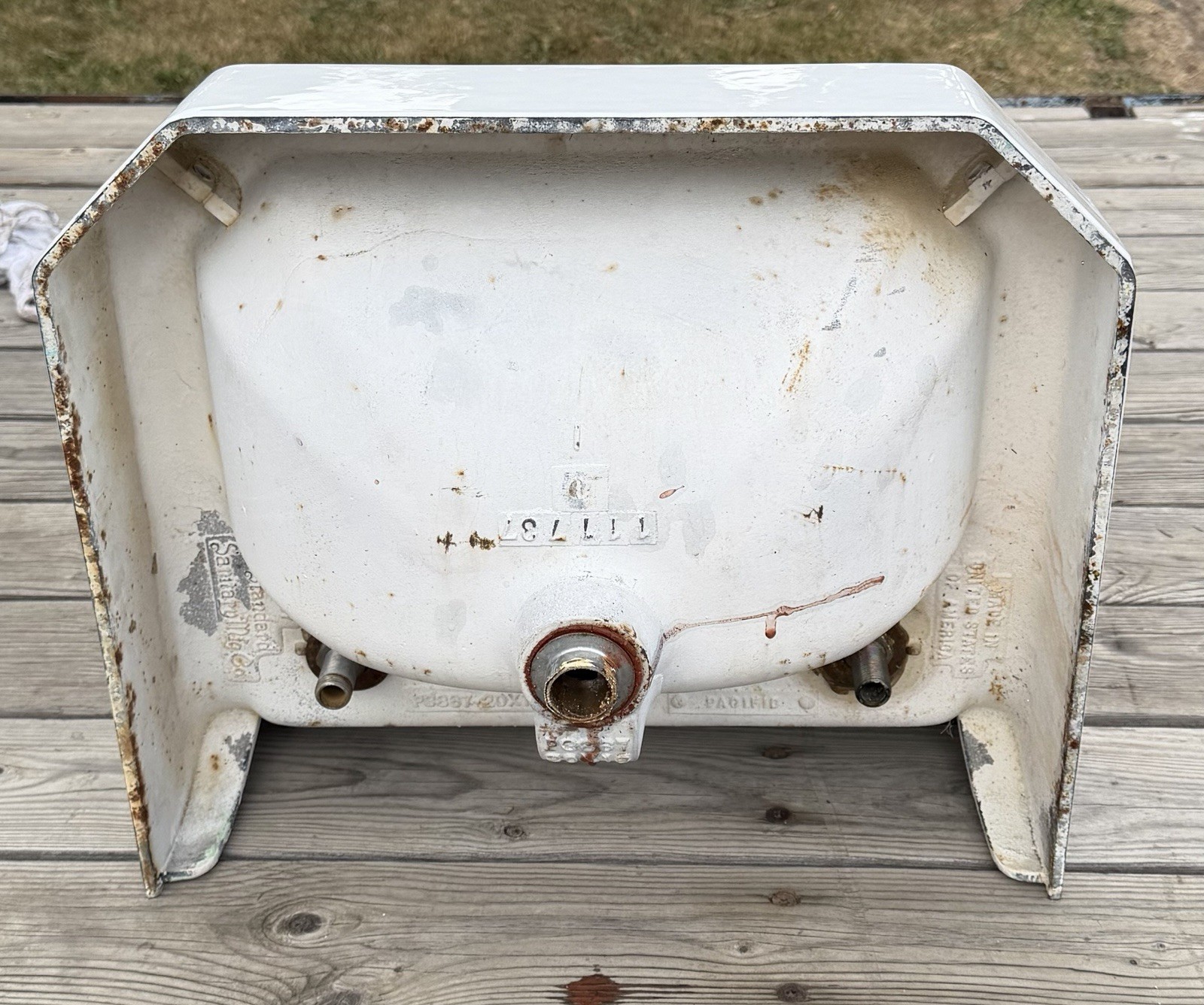 This product is an antique cast iron sink with a white porcelain high back design, dating back to the 1920s. Its vintage style and antique originality add to its unique charm. The sink measures 20 1/2” x 18”, making it a distinctive and authentic piece for plumbing and fixtures in a vintage or traditional bathroom setting. Its salvage aspect adds to its historical and collectible value, making it a rare find for those seeking antique pieces with character.This is in overall in good condition needs a good cleaning and does have a couple chips on the edge. Great piece of history. See photos for condition and size.