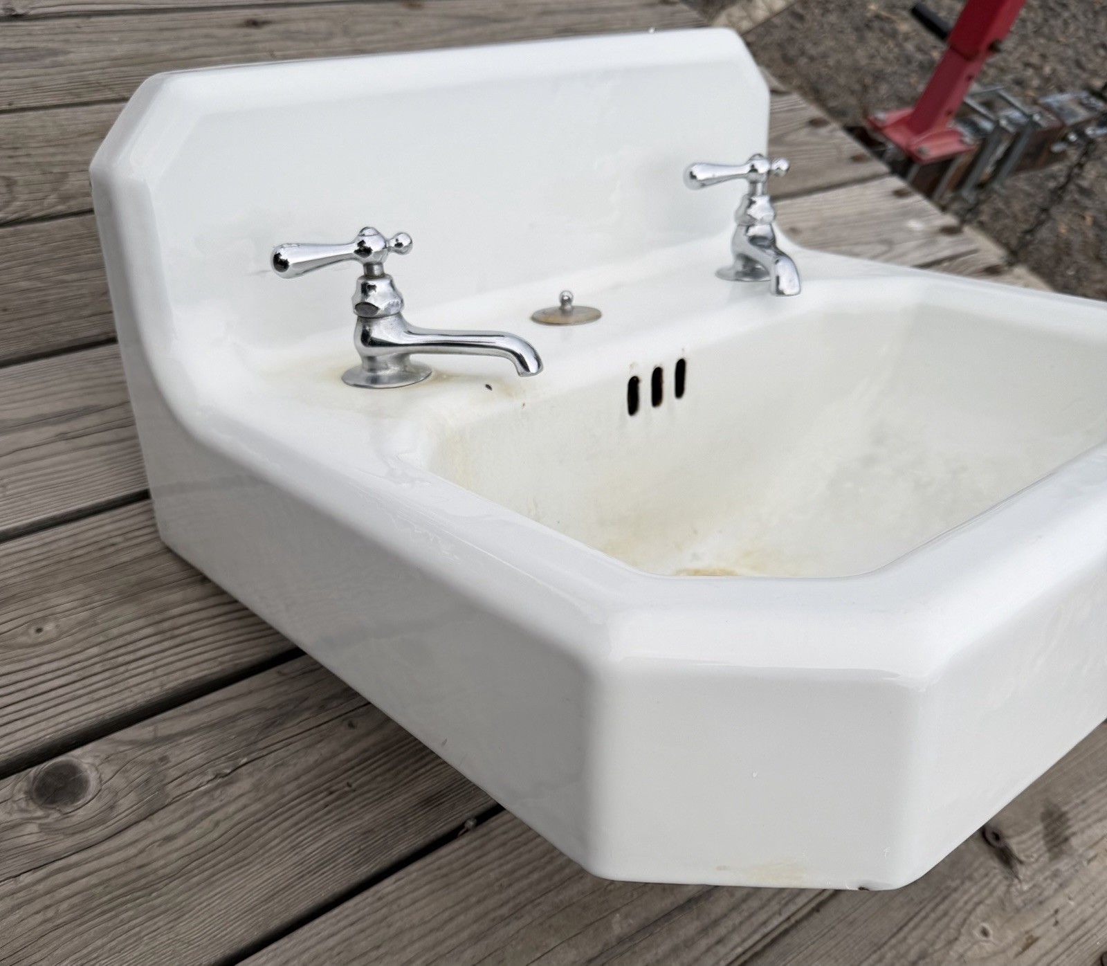 Antique Cast Iron & White Porcelain High Back Wall Sink - Bath