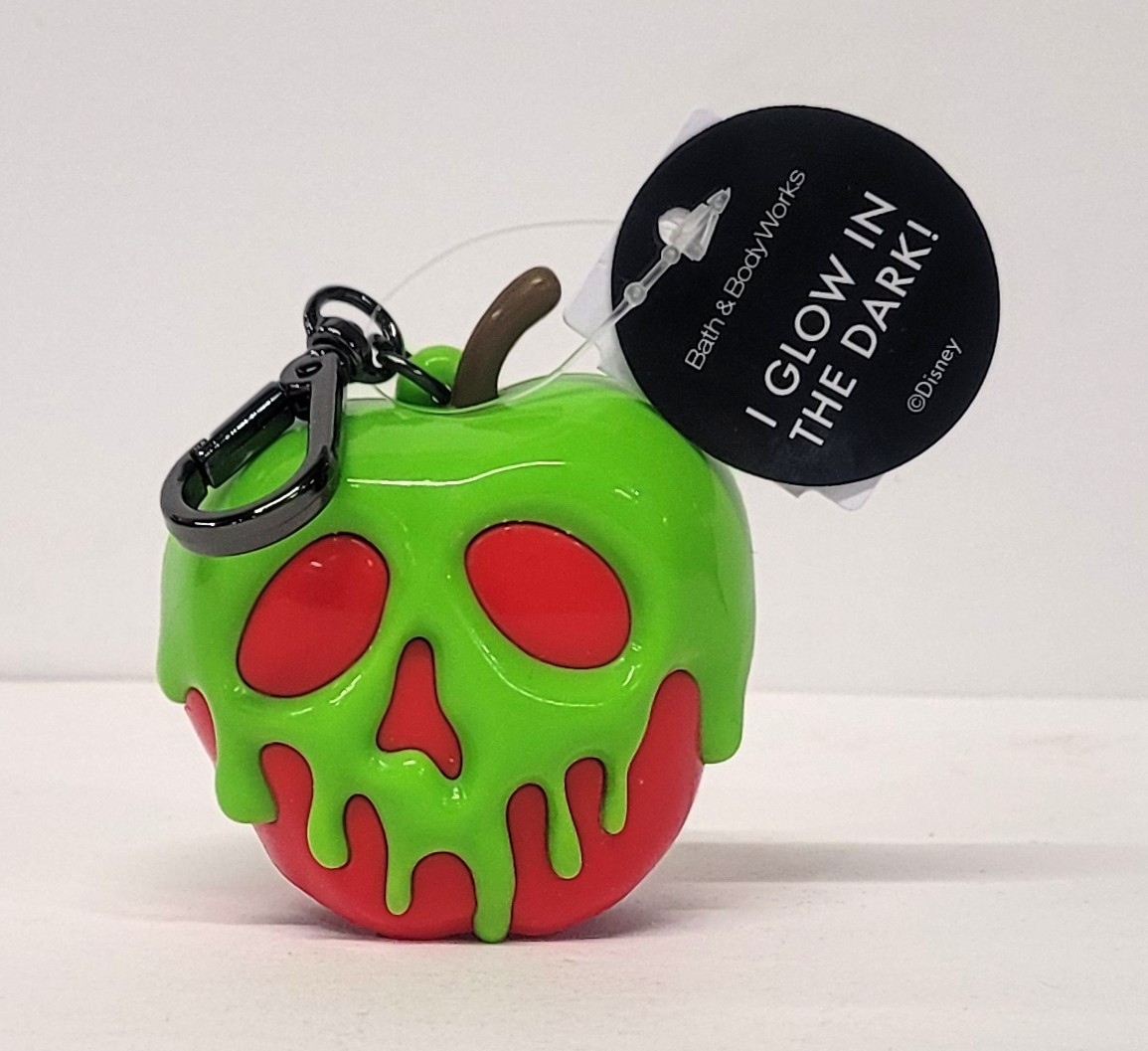 Bath & Body Works Evil Queen Poison Apple Glow-in-the-Dark PocketBac Holder (only) Will shroud your sanitizer in treacherous, glow-in-the-dark charm. It has a convenient black clip that attaches to your backpack, purse...or any bag really. PocketBac hand sanitizer (sold separately) · All our items are sourced directly from the manufacturer and are brand new, unused, unopened and undamaged. · Item will be shipped within 24 hours of payment and will ship with tracking and delivery confirmation. Except for weekends and holidays items purchased on Saturday will be shipped out on Monday.· We pack our items with stretch film to prevent items from opening, if the item is not factory sealed and package them in bubble wrap for the upmost protection of your item.RETURNS & REFUNDS: • Due to health and sanitary reasons only UNUSED, UNOPENED factory sealed or items with stretch film, the item must be returned sealed. returned within 30 days of sale are eligible for a full refund. • Items purchased in Sets, Lots and Bundles must be returned unopened and in the complete set as purchased.We follow eBay return policy and refund options for returns of unopened and/or used products. If you are happy with your transaction, please leave us a Positive Feedback!!! If you have any problems with your order, please contact us.Thank you, Rozy