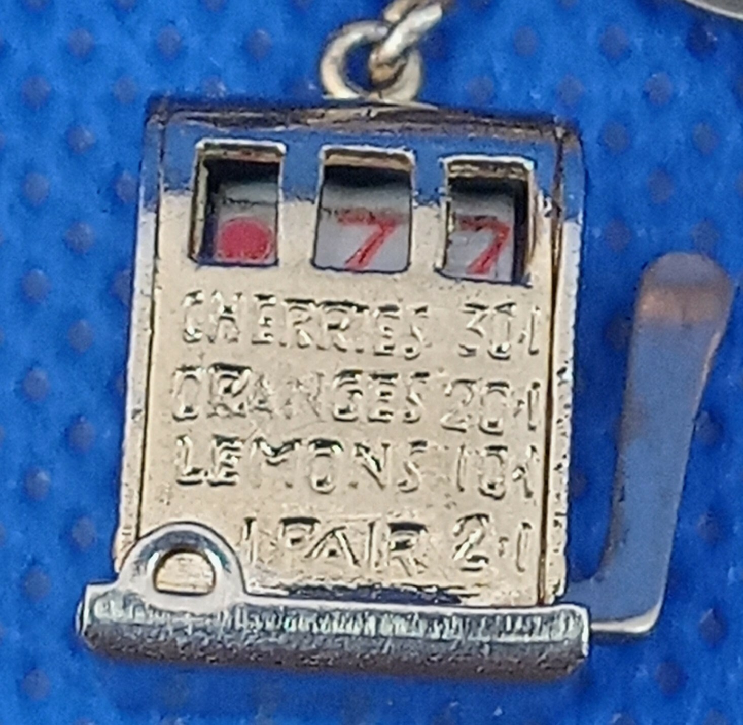 JACOBY BENDER 12KT GF CHARM BRACELET WITH WORKING CREA SLOT MACHINE CHARM R-C349. Bracelet is 7" in length. Charm is 0.5" x 0. 5", with working arm and spinning dials. Total weight: 18.9gms. Shipping by USPS. PLEASE SEE PHOTOS.