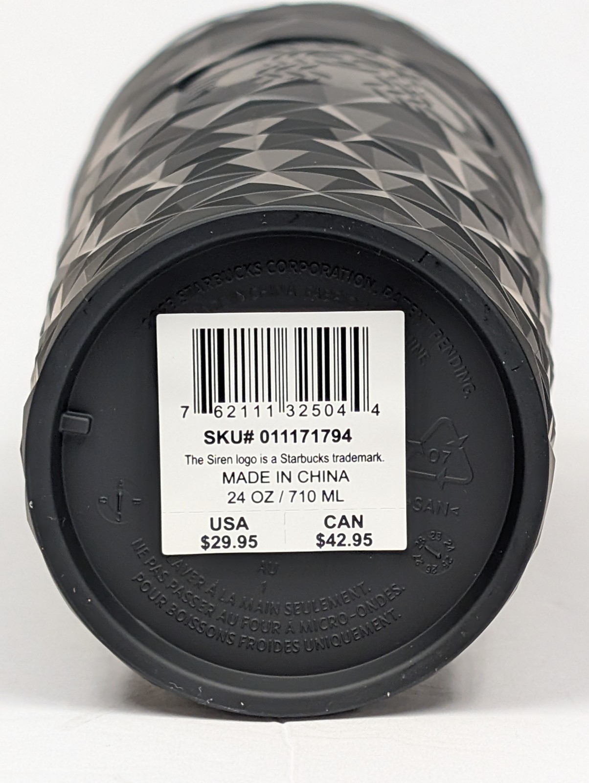 Starbucks Tumbler Glow-In-The-Dark Butterfly Topper Black Beveled Cup 2025, 24ozFestive collectable 24oz Venti Retail $29.99Starbucks cold cup seriesReleased for Holiday season 2025Comes with a silicone glow-in-the-dark butterfly straw-topperFor cold beverages onlyDouble-wall insulated plasticHand wash only24 oz. also known as VentiUPC 762111325044