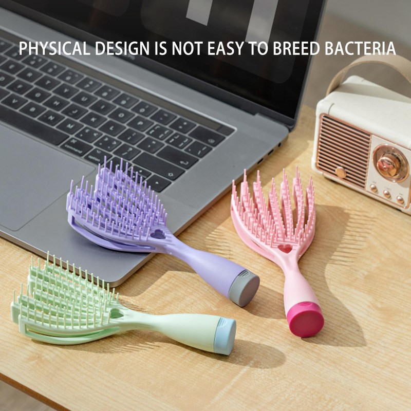accessories. Flexible and Washable: Made of high elasticity material, this hair detangler brush can bend and twist without breaking. The integrated design prevents hair from getting stuck and allows easy cleaning. Compact Size: This detangling brush for curly hair is compact in size, easy to carry around, and has a simple but stylish appearance. It also features a space-saving storage design that allows you to store it when not in use. Stimulate Scalp for Healthy Hair: Utilize this detangling brush to boost circulation and eliminate dandruff for effortless, fluffy hair. Prevent tangling and breakage while massaging your scalp and protecting against split ends. A practical wet hair tool. This detangler brush is easy to use on both wet and dry hair, plus it's washable for easy upkeep. Its simple but stylish appearance is perfect for anyone looking to add a touch of to their hair routine. With this brush, you'll achieve fluffy, healthy-looking locks in no time. Specifications: Product Name: Detangling massage brush Weight: about 29g Size: about 15.7*5.6*3cm/6.18*2.2*1.18 inches Material: Thermoplastic elastomer material + polypropylene Packing List: 1 pc*Detangling massage brush Notes: 1. Due to monitor