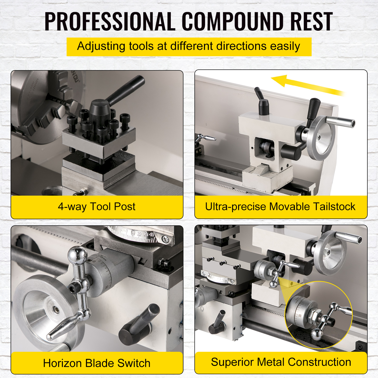 VEVOR Mini Metal Lathe 8"x14" Metalworking Machine Variable Speed 2250 RPM 600W