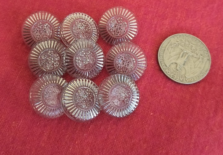 Vintage 3/4in Crystal Patterned Shank Glass Buttons Set of 9 Specs