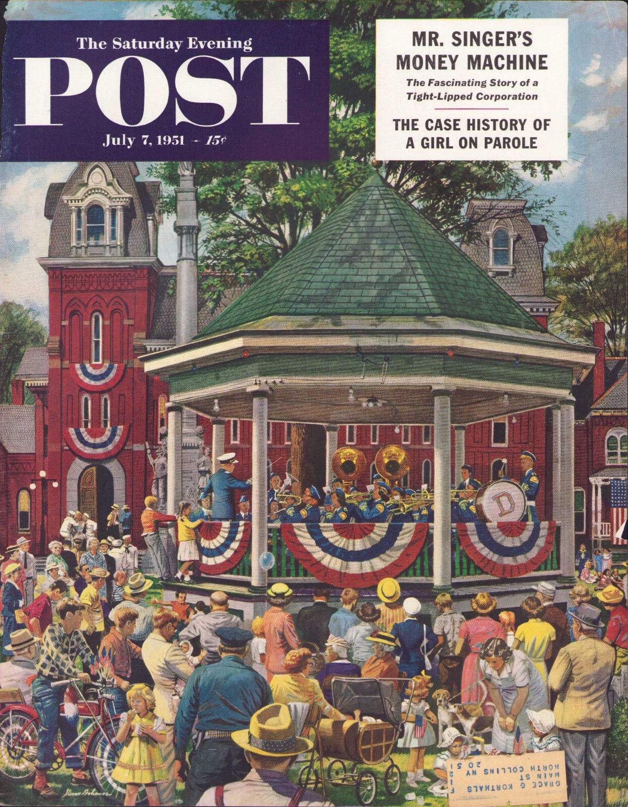 1951 JULY 7 Patriotic Fourth Town Square SATURDAY EVENING POST COVER ONLY #2