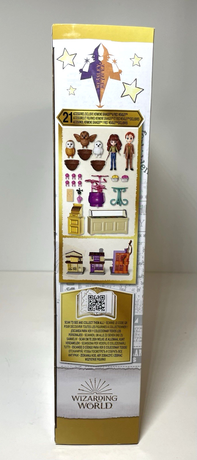 Harry Potter Magical Minis Diagon Alley 3-in-1 PlaysetNew in BoxIncludes 3 Playsets (Weasley's Wizard Wheezes, Eeylops Owl Emporium, Florean Fortescue's Ice Cream Parlour), 2 Exclusive Figures (Hermione Granger and Fred Weasley), 21 Accessories, and 1 Instruction SheetRequires 3 x AAA batteries. Batteries are not included.I have other Harry Potter items in my store. All items are from a smoke free environment. Thanks for looking!