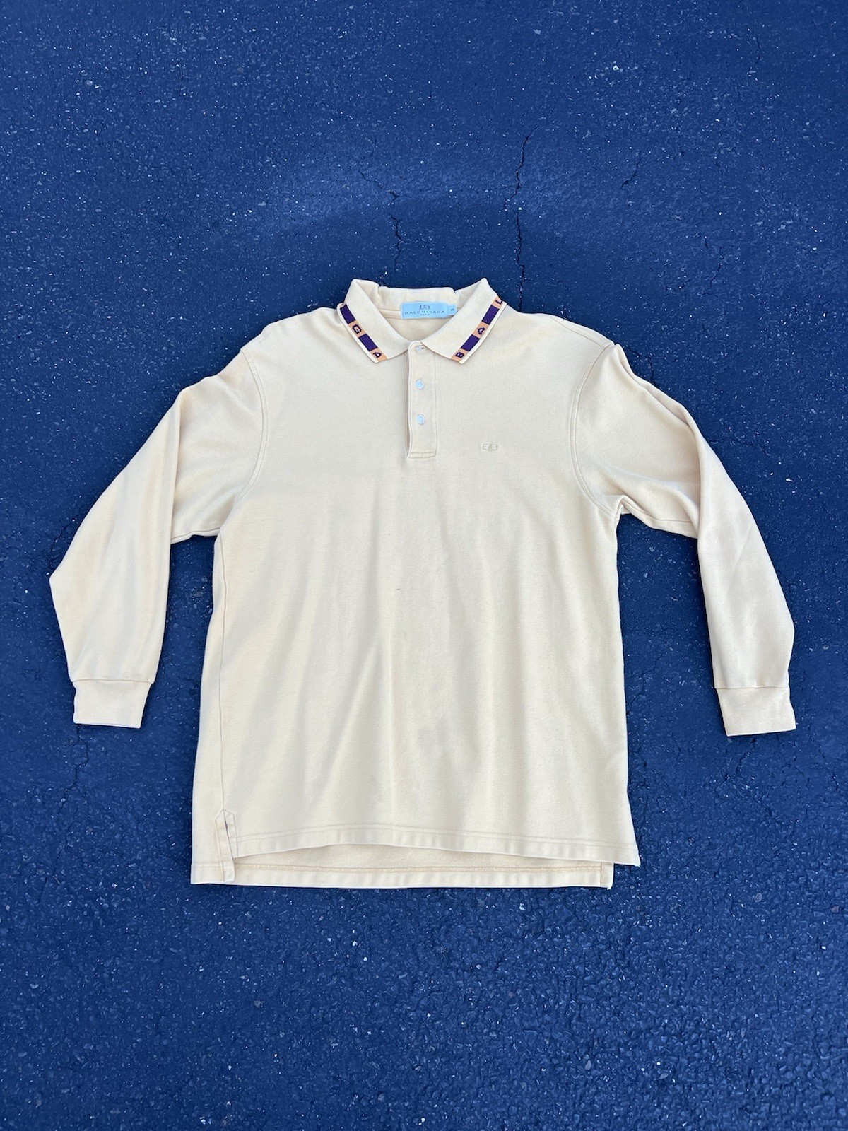 Vintage 1990’s Balenciaga Long Sleeve Polo Shirt Yellow Spellout RARE Specs