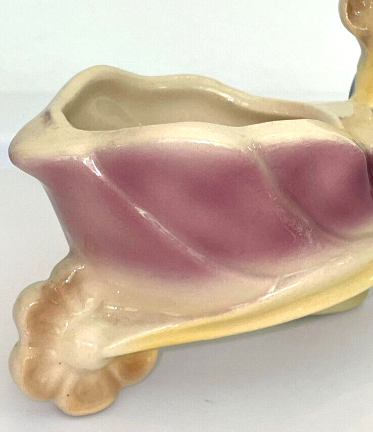 VTG 1950s Pixie Elf Boy w/ Flower Wheel Barrow Succulent Planter with FREE SHIPPING.The only mark is a stamped "11" on the bottom. Maker is unknown, but some have attributed this to Shawnee Pottery.Paint is still rich & vibrant. Excellent vintage condition with no chips, cracks or repairs! There is one small area on the bottom of his left foot which is unglazed - this is a result of the decoration process and is not considered a flaw or defect.Measures approximately 5" long, 2.5" wide, 3.5" high."What is the purpose of buying vintage if you want it to look new?"We do not clean vintage items and leave that to the discretion of the buyer. All vintage items will show signs of wear consistent with age, as should be expected.We consider "vintage" to be 25+ years old (from late 1990's or before), and "antique" to be 100+ years old (from mid 1920's or before).Please see all photos for complete description. My phone case is red and reflects as red/pink/orange in some photos. Pictures taken with and without flash.All listings are sold as-is and all "reasonable" offers will be considered.