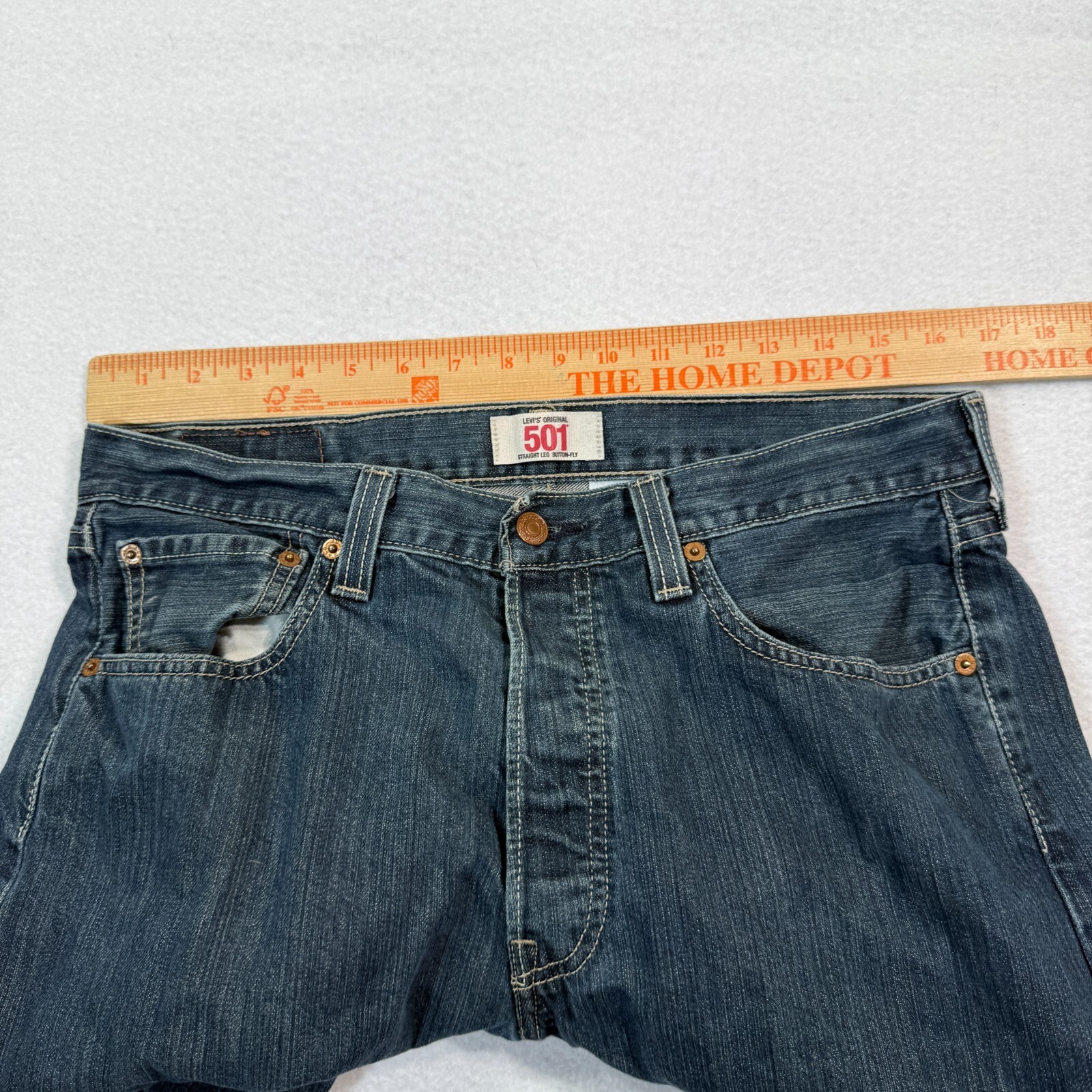 Levis 501 Jeans Mens 33x30 Blue Straight Button Fly Mid Rise Dark Wash Denim Specs