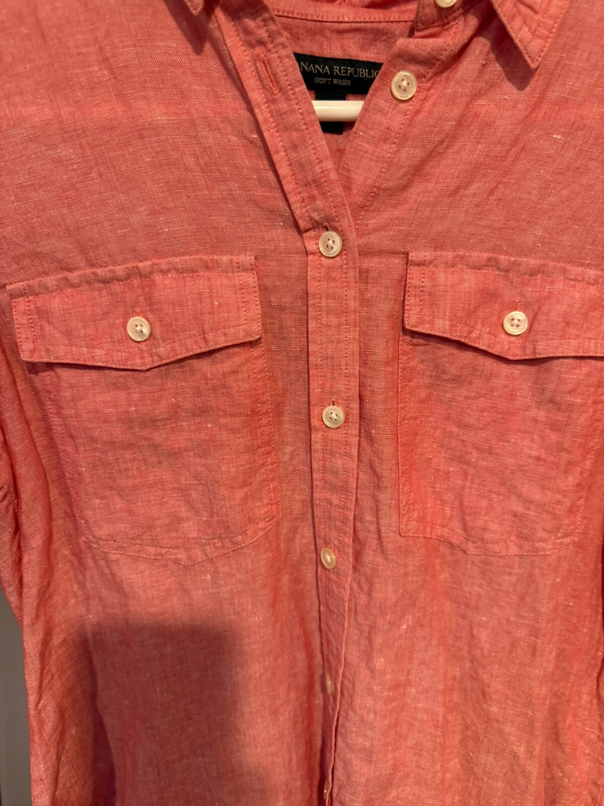 BANANA REPUBLIC Womens Small Long Sleeve Button Down Shirt Pink Linen