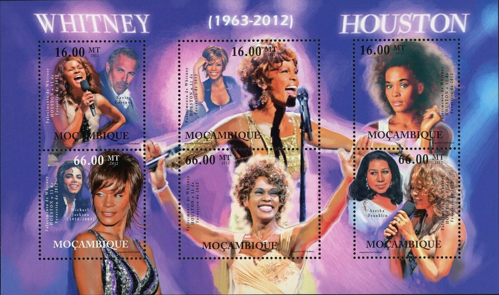 Whitney Houston Stamp Michael Jackson Kevin Costner Aretha Franklin MNH Elizabeth Houston was an American singer and actress. She is one of the best-selling music artists of all time, with sales of over 200 million records worldwide. Houston is also one of the most awarded artists in history. Known for her powerful and soulful vocals, she has influenced many other singers.Fast & Free Shipping within U.S.A. We Care for your order, Pack it carefully and ship it within 48 hours. Satisfaction Guaranteed! Please explore our store for more stamps, souvenir sheets, post-office collectibles and philately books and pre-philatelic items: meditative.philately