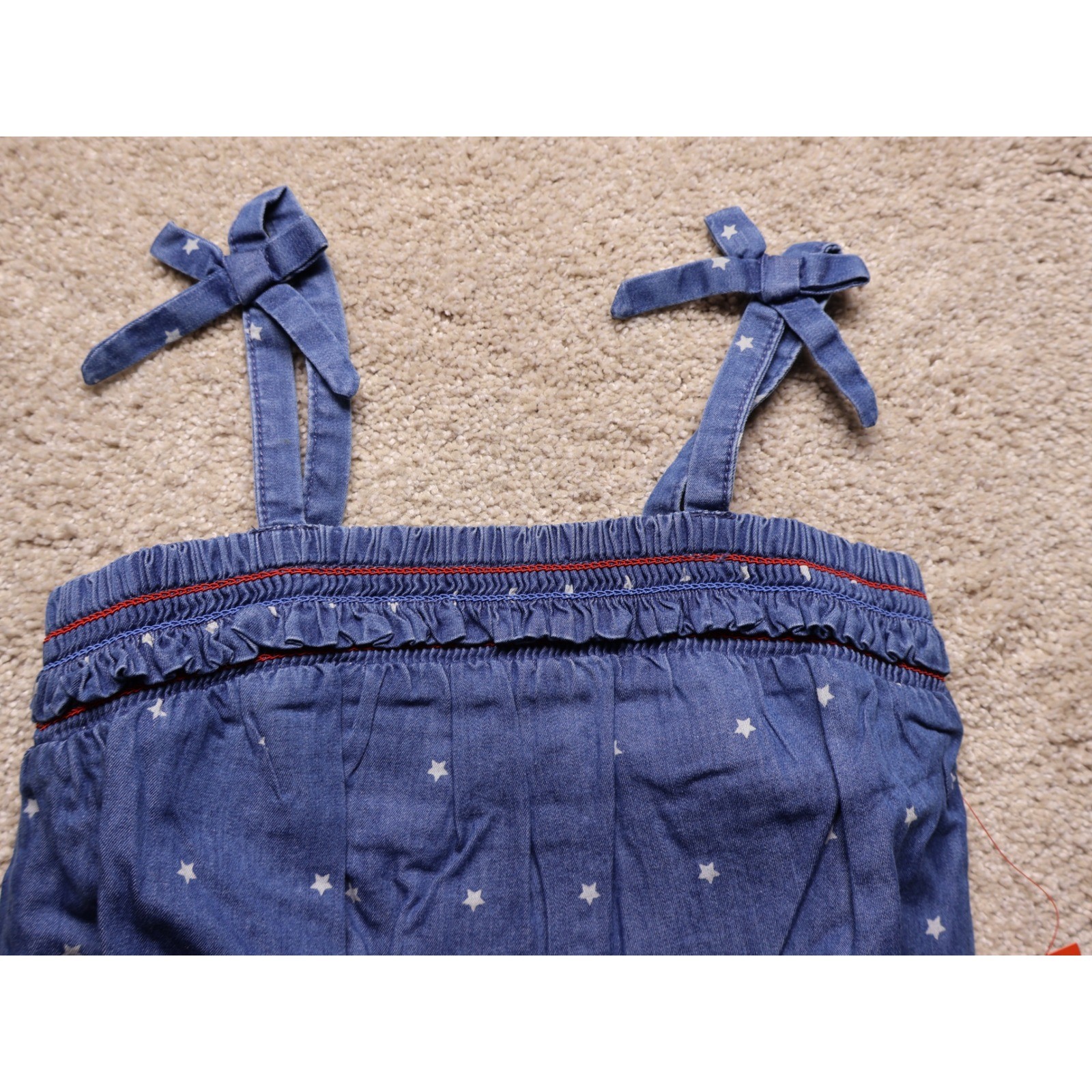Cat Jack Kids Girls Denim Star Romper Jumpsuit Size S 6 6X Blue Tie Straps NWT Specs
