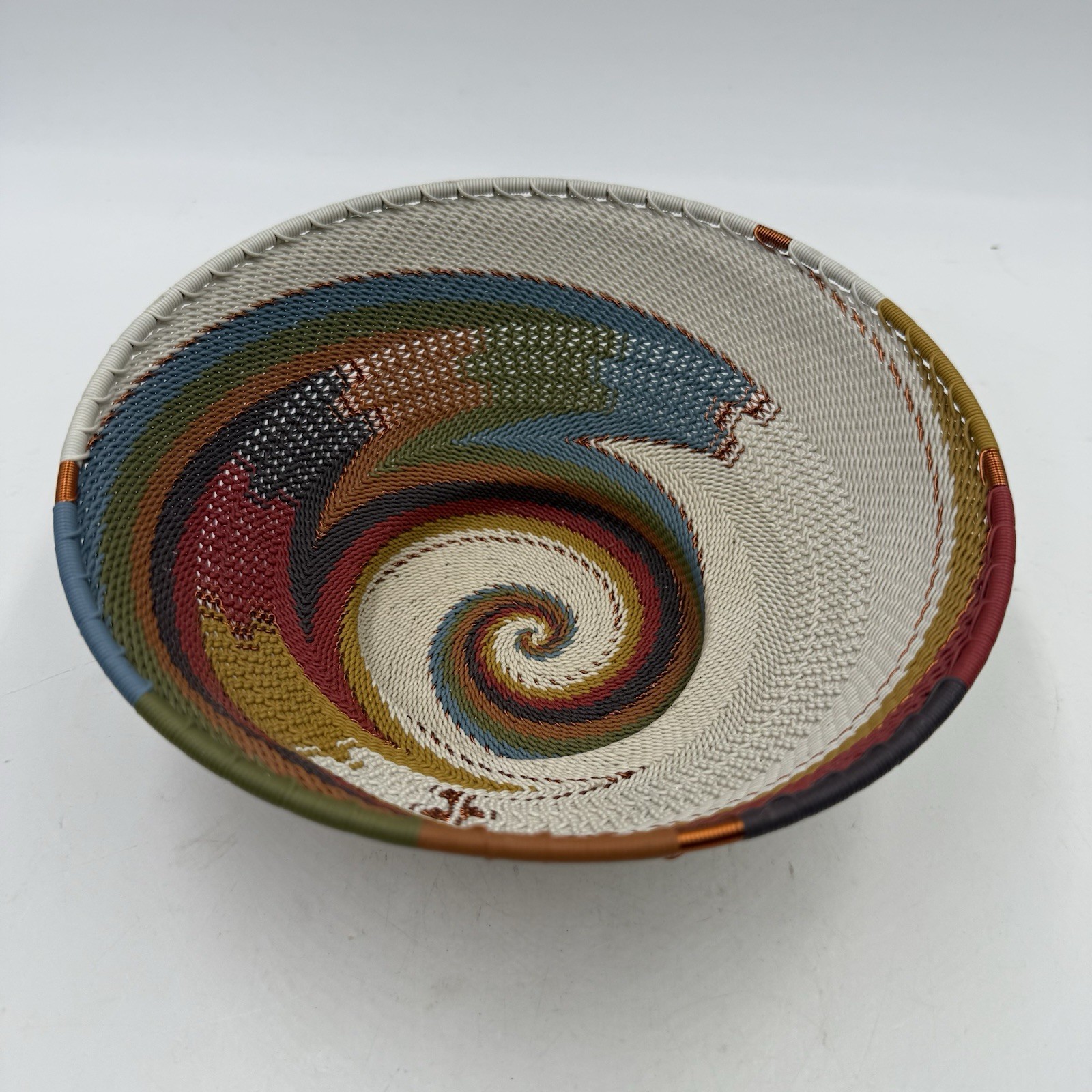 Handmade 7.75” Multicolor African Zulu Telephone Wire Woven Bowl Basket