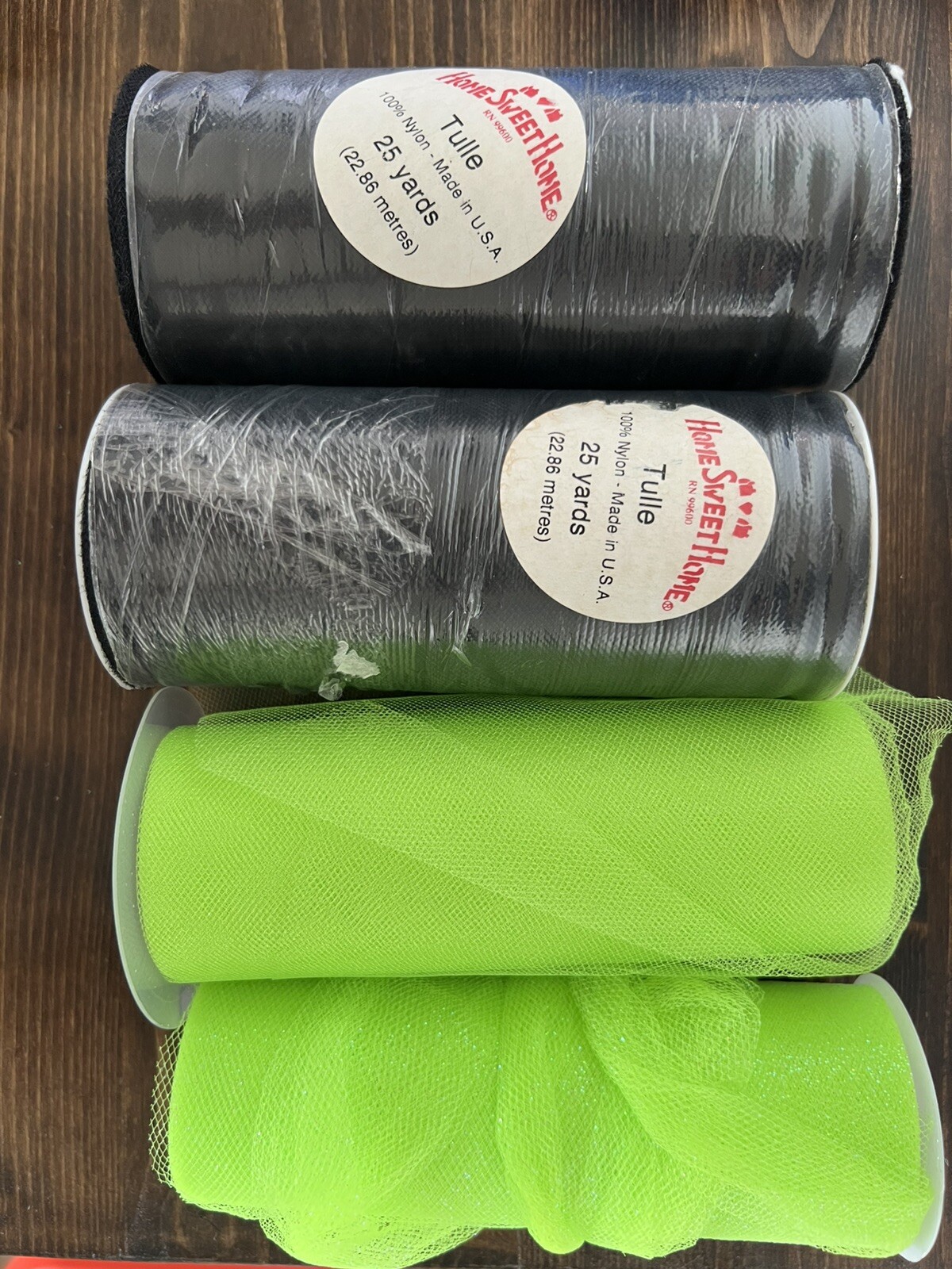 4 rolls as shown 2 rolls of black tulle - new 2 rolls of green tulle - open and usedSee photos