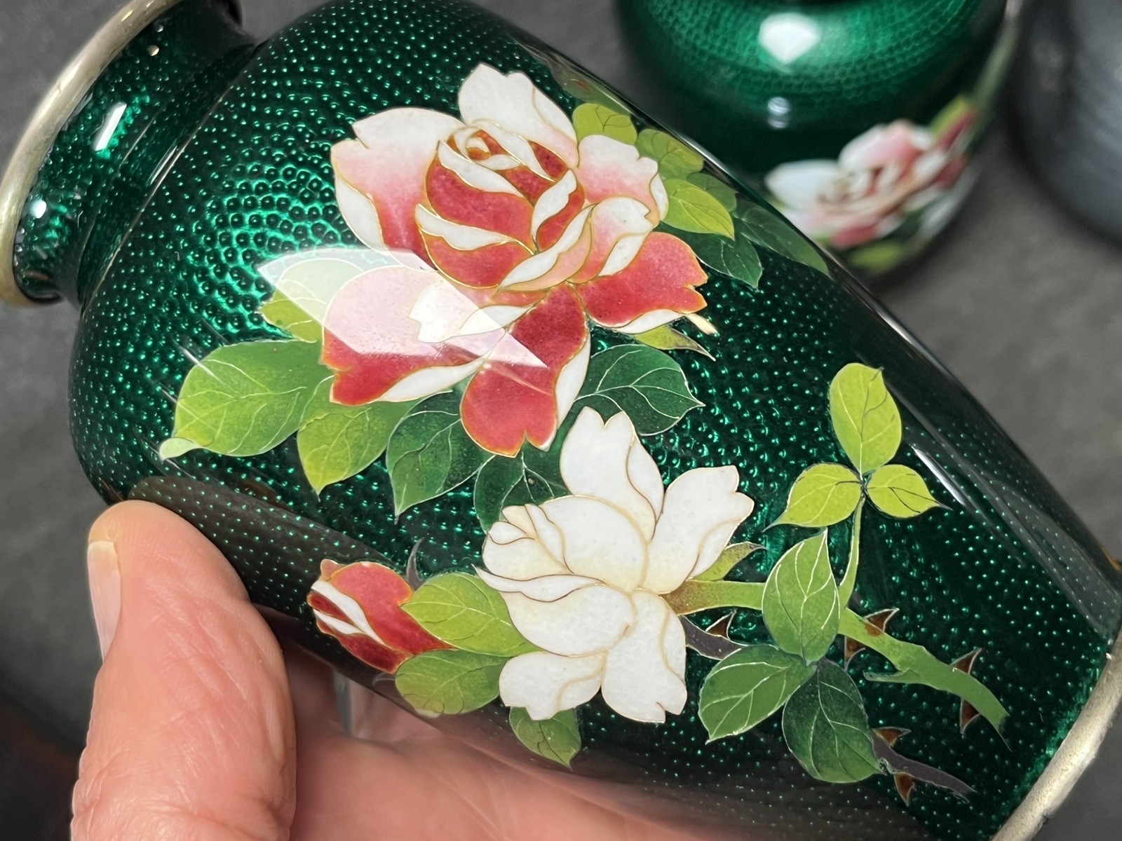 Lot of oriental items, 2 Japanese high quality laquer wooden boxes one antique cinnabar Chinese brass footed box 1920s , lovely huge cats eye carved Buddha. Pair vintage Japanese cloisonné vases (bottoms have been drilled see photos) all items were from one estate full of very high quality Asian pcs. Flat rate shipping is for continental United States only