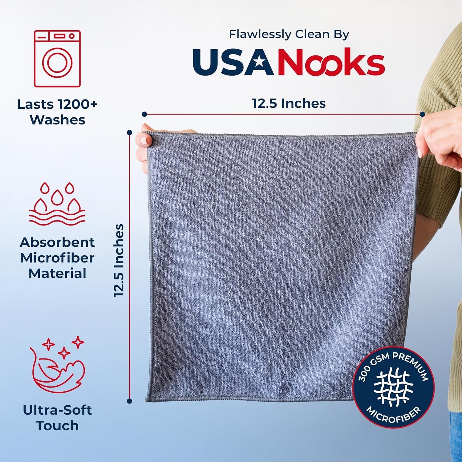 Microfiber Cleaning Cloth Grey - 12 Pcs (12.5"x12.5") - High Performanc Specs